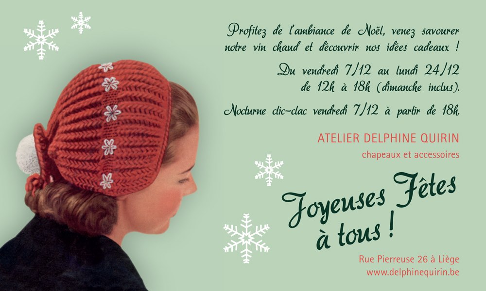 N’hésitez pas trop longtemps, Delphine Quirin n’ouvre son atelier que quelques semaines sur l’année! Tous les détails sont sur l’affiche ci-dessous: