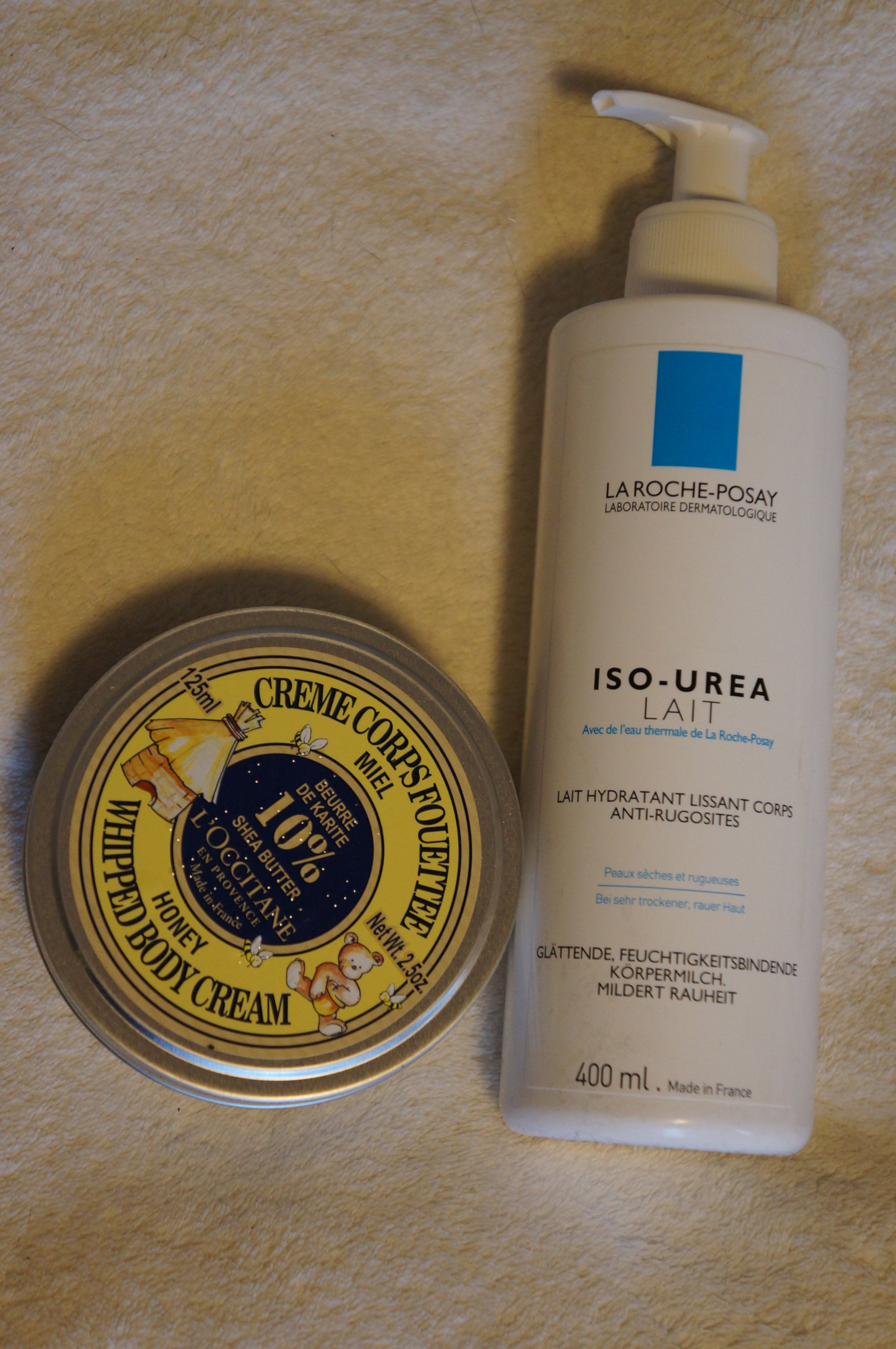 La Roche Posay « Iso-Urea » and « Honey Whipped Body Cream » by L’Occitane: