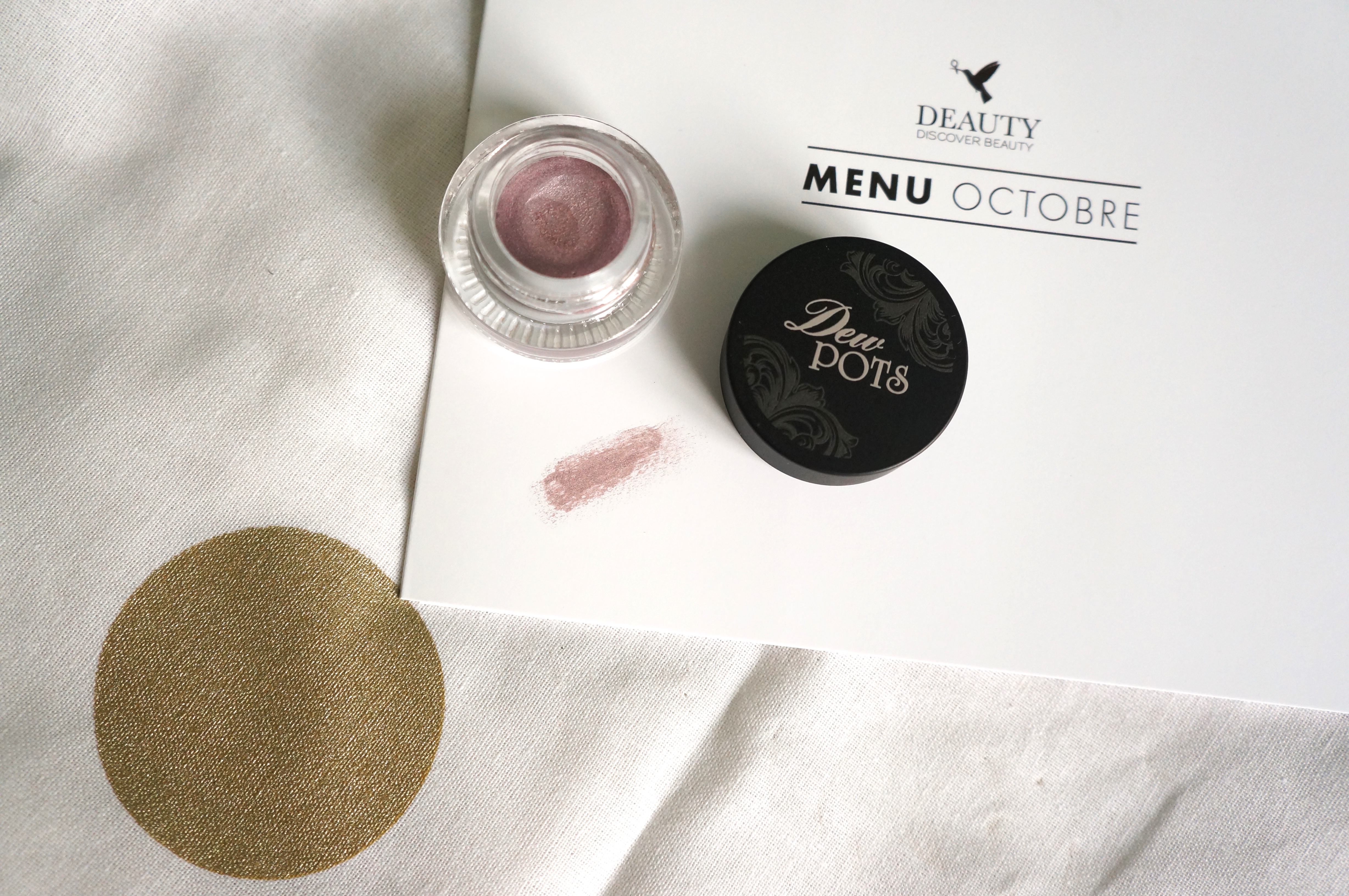 ME ME ME – DEW POTS (Full Size dans la box: 3ml / 9,87€): Alors là, c’est le petit pot qui m’a fait sauter au plafond. Je ne savais pas du tout qu’on pouvait trouver Me Me Me en Belgique. J’avais déjà vu notamment Lisa Eldridge utiliser la marque à plusieurs reprises mais ça restait du domaine de l’impossible à atteindre (ok, je n’avais pas non plus fait de recherches mais je n’ai jamais croisé la marque au plat pays en même temps…). La teinte est un joli rose glacé qui me va très bien. L’application est très facile, il s’estompe très bien au doigt et est idéal pour un maquillage rapide lors des matins pressés. Il est aussi idéal pour les débutantes en maquillage. La texture est une sorte de fards crème très doux et pas sec du tout qui donne un fini poudre une fois appliqué. Le seul et unique bémol que je lui trouve: la taille du pot. Il ne faut pas avoir de doigts trop gros ou alors, avoir la patience de prélever le produit au pinceau.