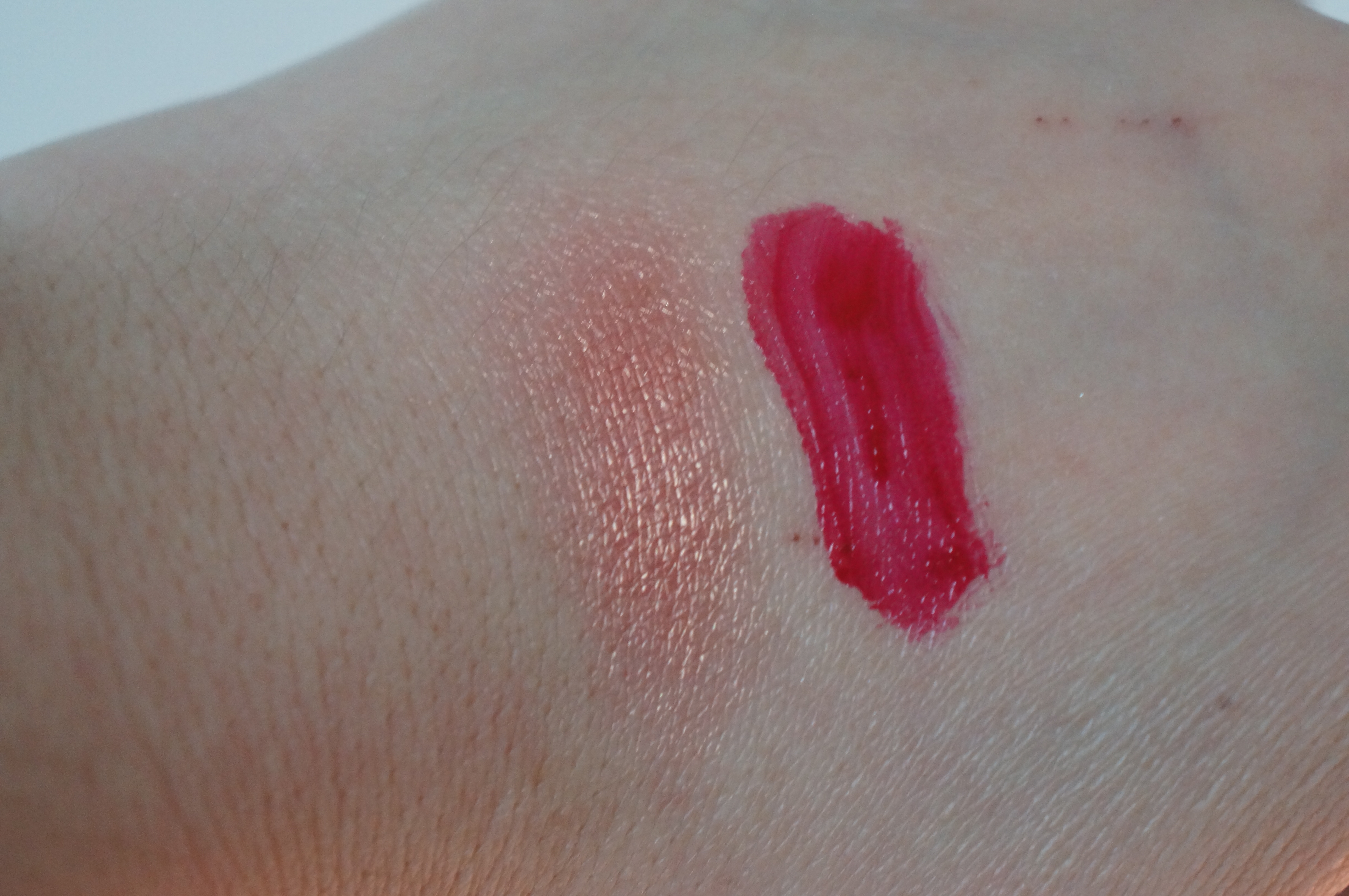 Et finalement… Les deux derniers viennent de chez H&M Beauty! Le dernier petit tremblement de terre chez les make-up addicts et les étudiantes qui traînent en ville après les cours. Je ne m’attendais pas à quoi que ce soit de transcendant lorsque j’ai appris la sortie de la gamme. « Encore du make-up plastique peu pigmenté et mal fini va débarquer » me disait mon côté blasé… Que nenni ma bonne dame! Les packagings sont très classes, presque très bien pensé (tu vas m’expliquer pourquoi ils foutent des miroirs dans les fards à paupières mais pas dans les blushs? Nan parce que sérieux, moi je retouche plutôt mon blush que mon fard…), les produits que j’ai swatché étaient assez bien pigmentés, des palettes étaient disponibles, les textures sont variées (blush crème ou poudre, gloss, rouge à lèvres, gloss, encres à lèvres…),… Non, vraiment, j’ai été agréablement surprise.