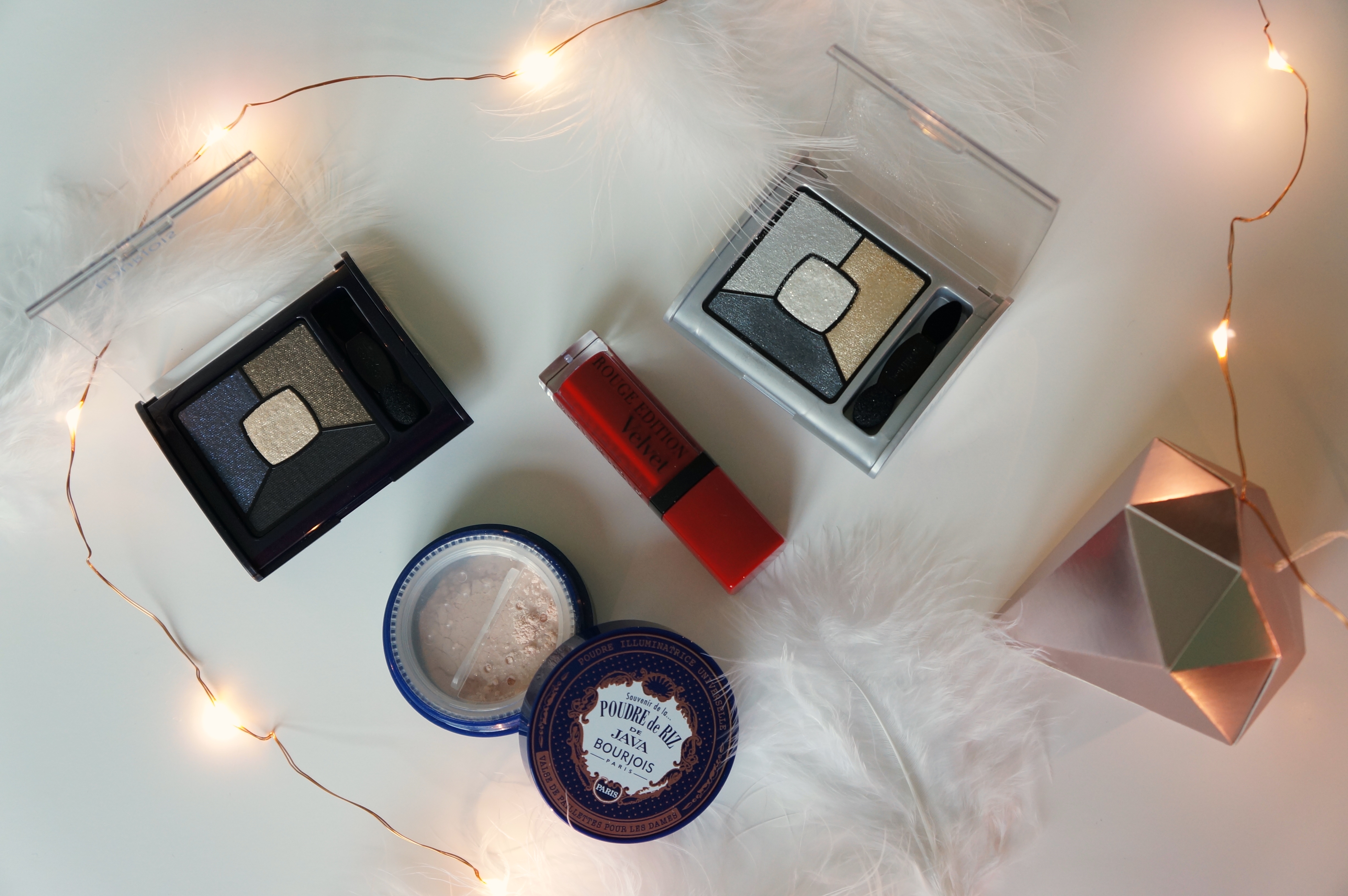 Cette année, ce sont deux nouvelles palettes, conçues selon leur collection « Smoky Stories », contenant 3 ombres à paupières et des paillettes qui ont été pensées pour vous. La pigmentation et la tenue sont très bonnes et même si on peut reprocher quelques chutes de temps à autres, ça reste une affaire assez intéressante. A cela s’ajoute une ré-édition de la fameuse poudre de riz Java dont je vous avais déjà parlé ICI. Et finalement, pour l’occasion, Bourjois a ENFIN sorti un vrai rouge comme je les aime. Les autres existants étant à mon opinion un peu trop ternes, trop orangés, pas assez rouges… Mais celui-là, il est juste parfait!