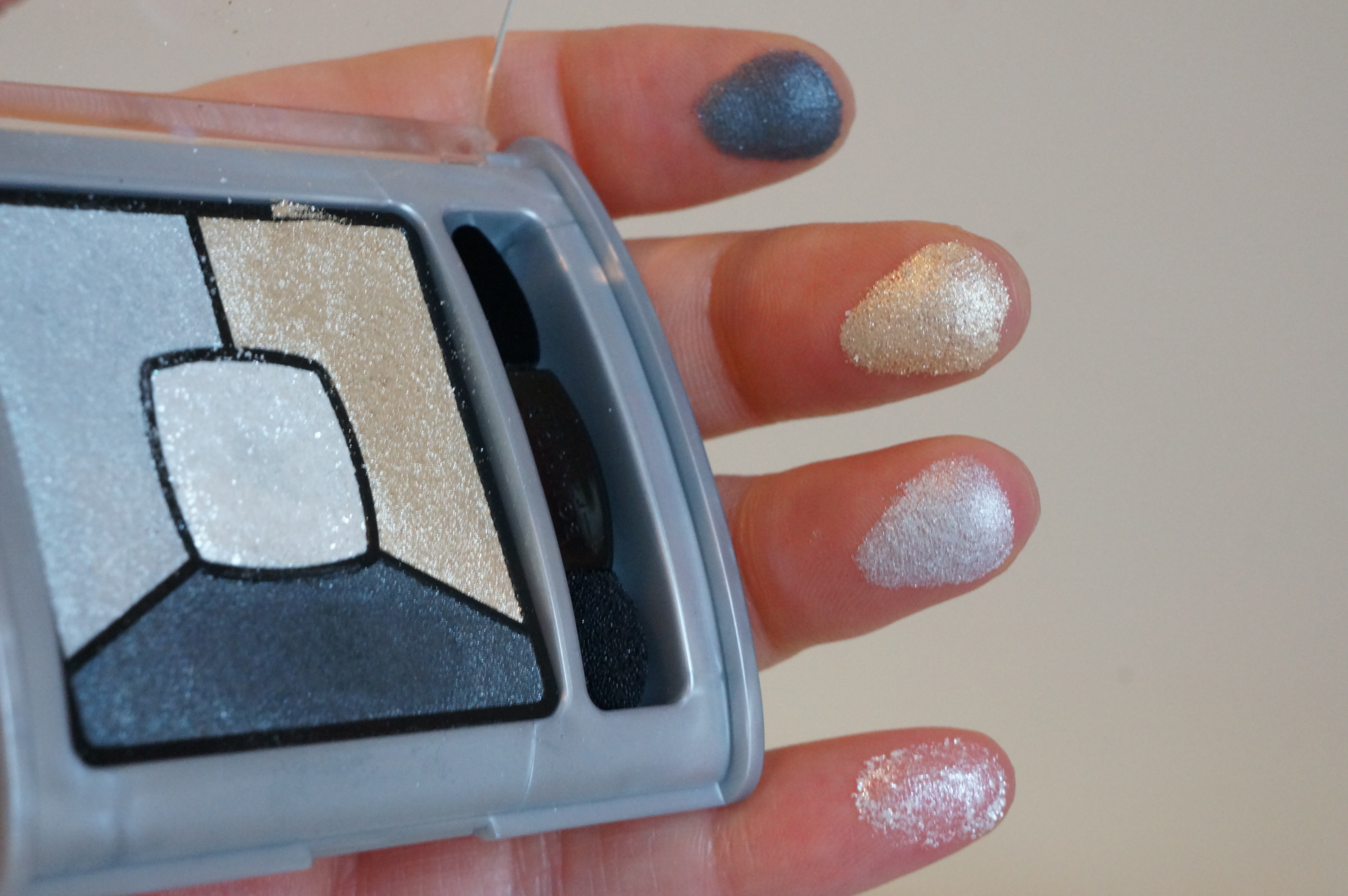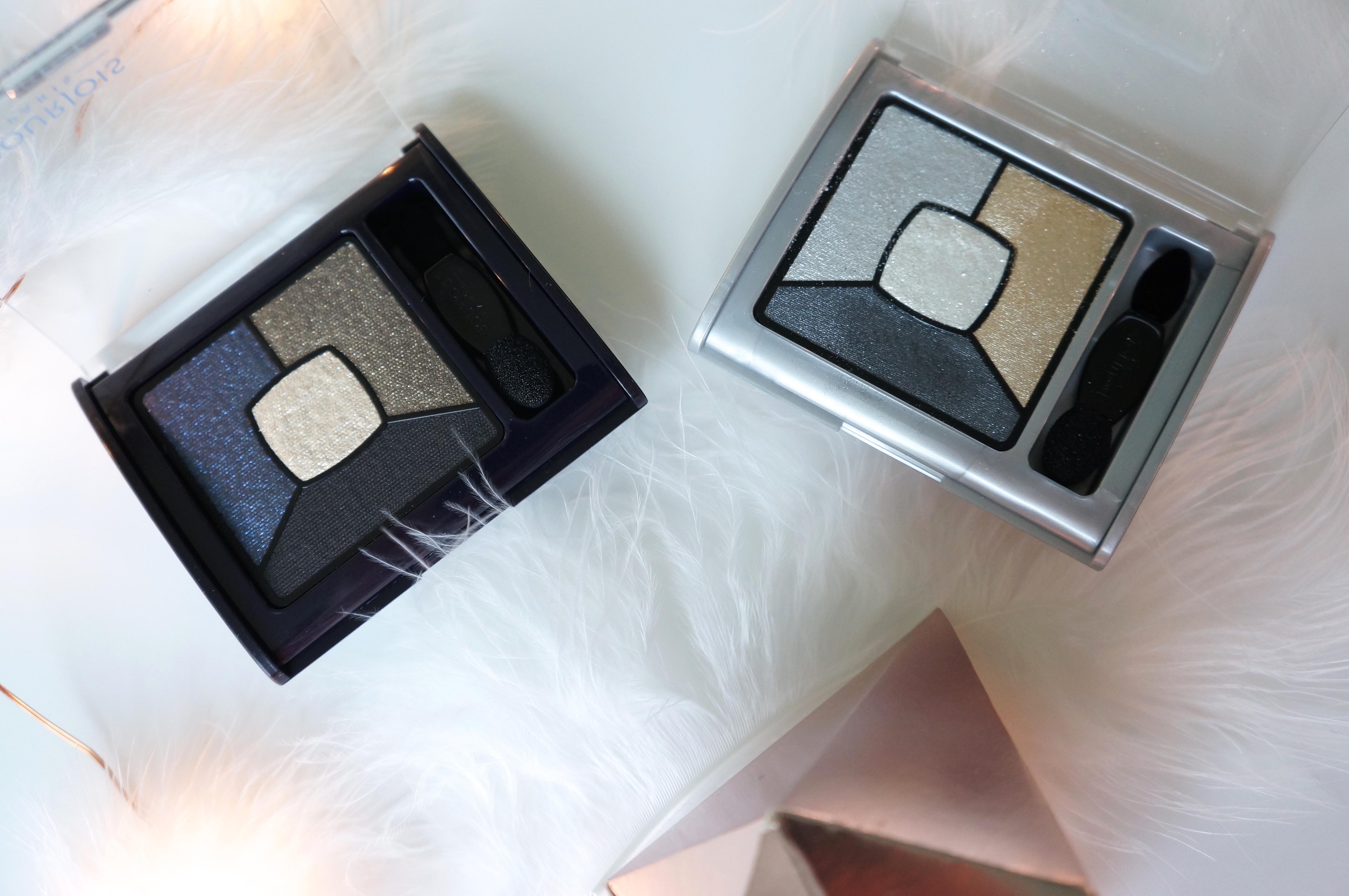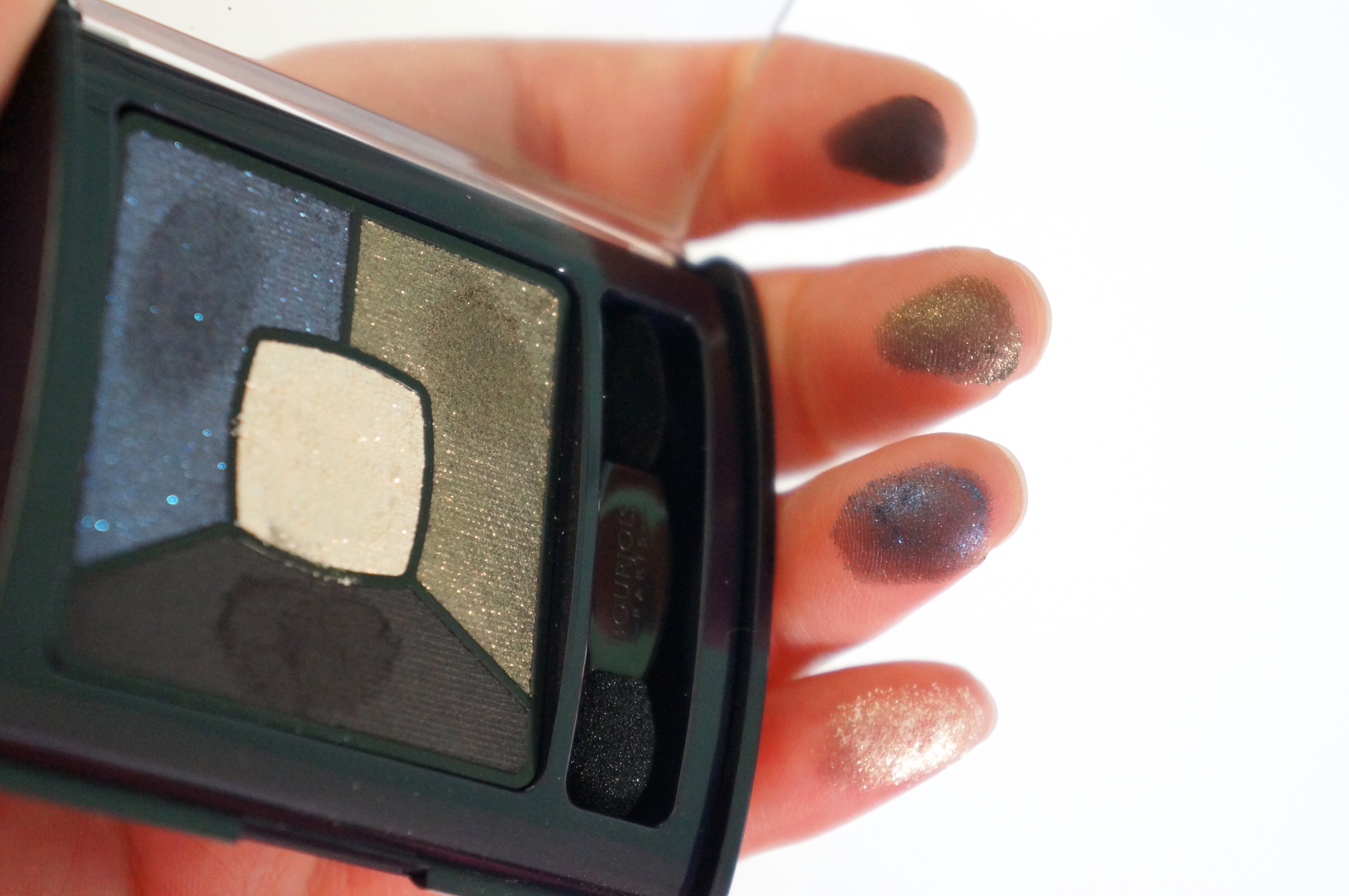 « Welcome Black » est la palette la plus affirmée des deux contenant un noir mat intense, un bleu électrique irisé sublime, un doré-kaki irisé ainsi qu’une touche de paillettes dorées. Il est clair ici qu’un smoky intense est l’idée principale. On peut ainsi choisir de le décliner soit en bleu nuit, soit plus doux avec le doré-kaki (qui tire fort sur le noir quand même). Mais attention, soyez prévenues, ne prévoyez pas d’utiliser les paillettes du centre comme enlumineur au coin de l’oeil ou sous les sourcils. J’ai cru que… Mais non, ça ne marche pas. Les paillettes sont bien compressées mais restent des paillettes. En l’utilisant intensément au centre du smoky ou en le parsemant légèrement, il magnifiera tes yeux avec les étoiles de la nuiiiiit… Oui, ça c’était la réflexion bien lourde à laquelle tu auras peut-être droit à 3h du mat’ en allant te commander une énième coupe de champ’. Si tu as tenu au champagne jusque là!