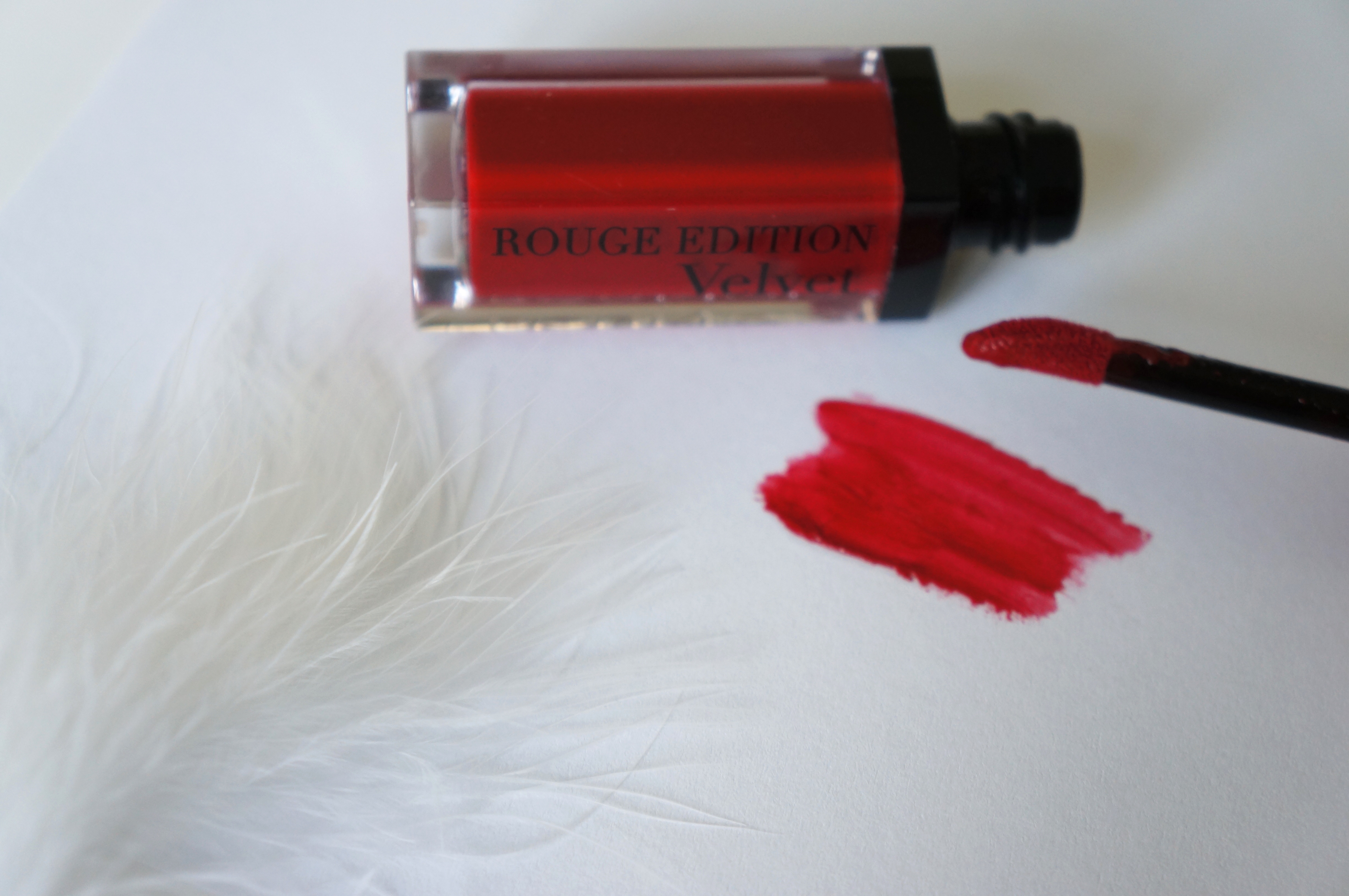 La couleur est donc un superbe rouge qui a de légers sous-tons bleus (et je pense qu’ils peuvent encore tirer un peu plus sur le bleu d’ailleurs… Tu le vois mon message subliminal Bourjois?). Parfait pour celles qui n’ont pas les dents d’un blanc immaculé mais qui veulent tout de même profiter d’un beau rouge. Il est mat et s’applique très facilement. Soit en enlevant l’excès de l’applicateur et en floutant au doigt pour un effet « Blanche-Neige qui revient d’une promenade dans les bois », soit à fond les ballons, la totale avec une vraie bonne couche ou même deux!