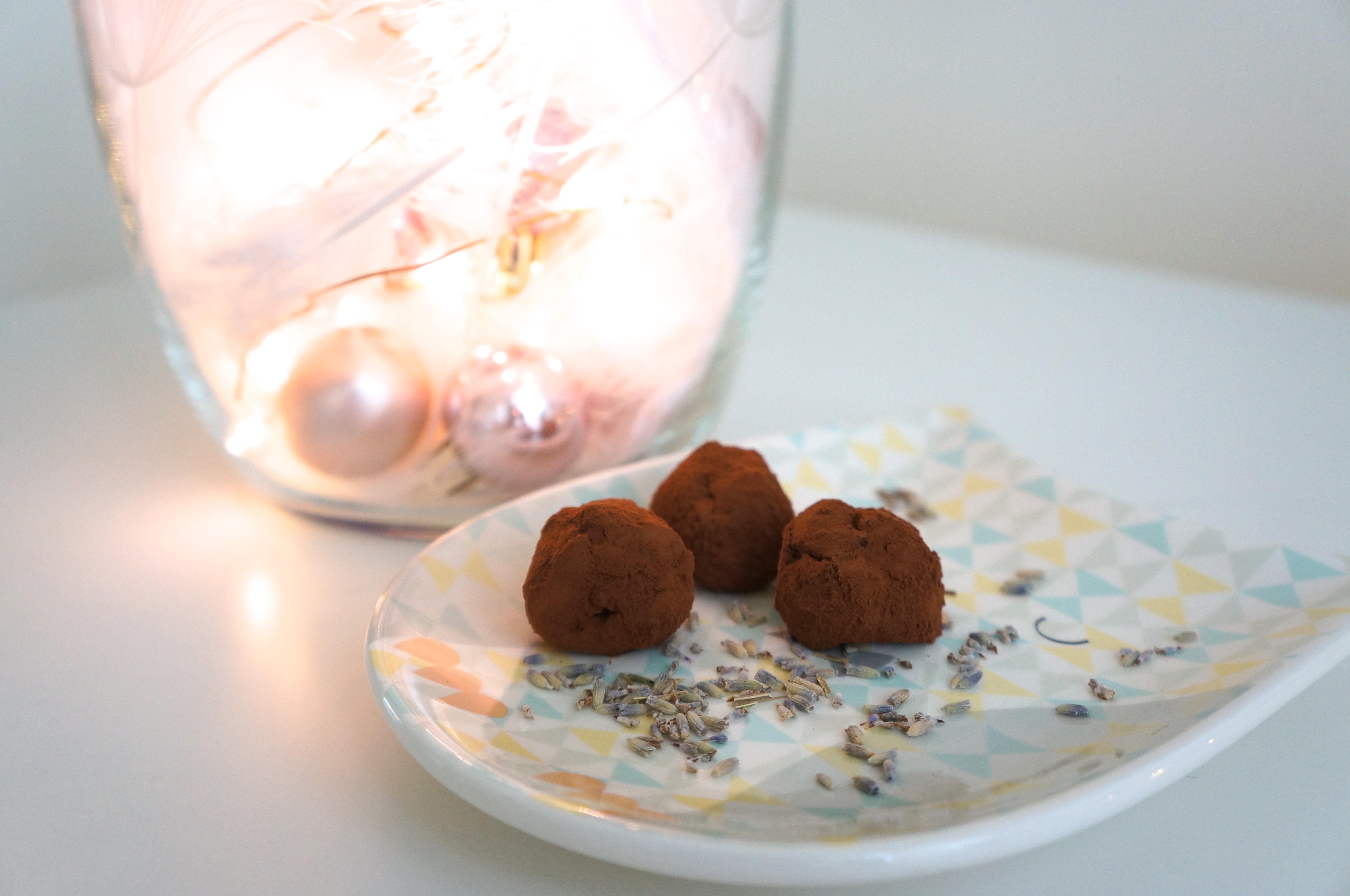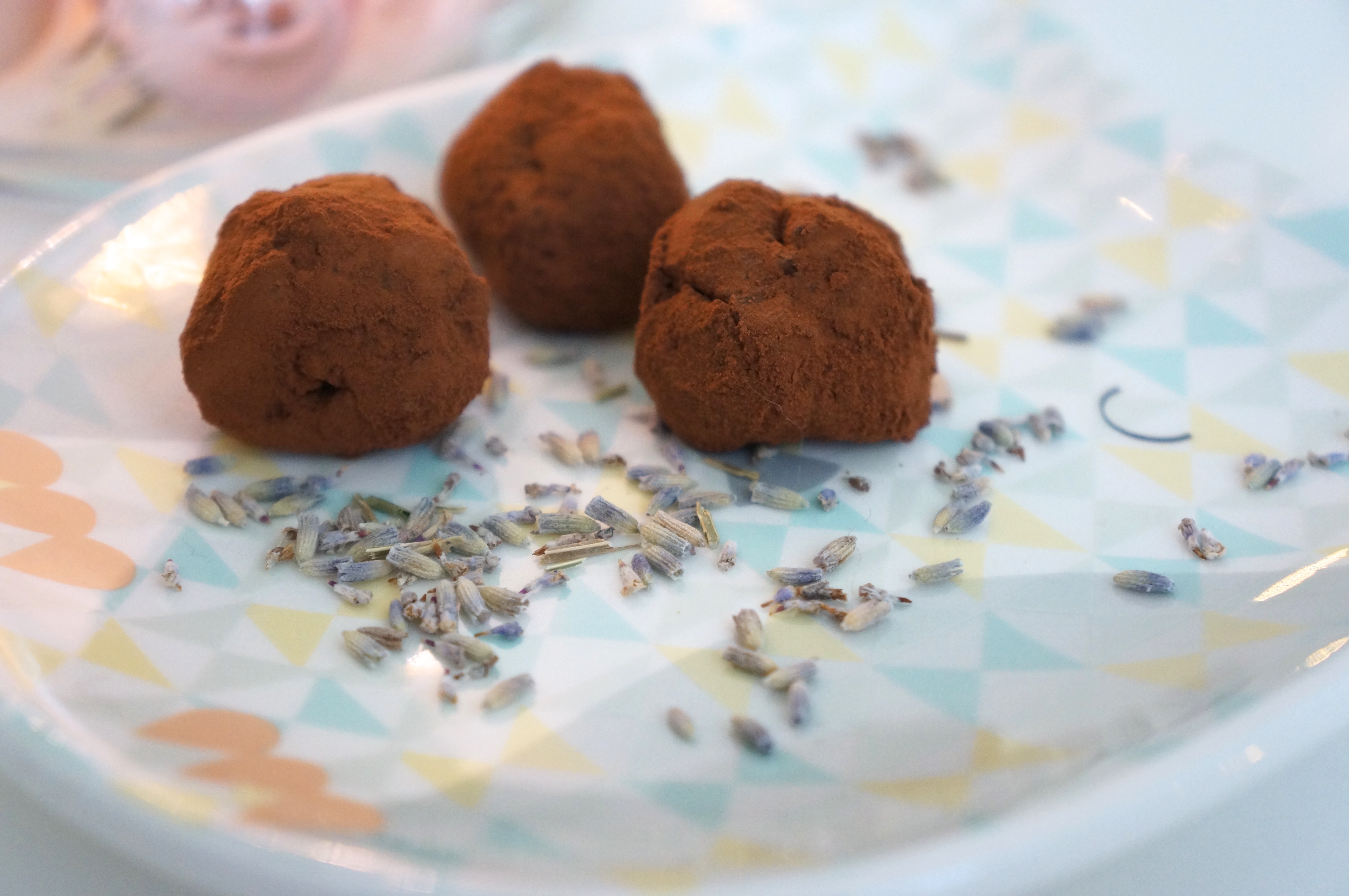 Un jour, il m’a pris l’idée farfelue de faire mes truffes moi-même… J’ai trouvé une recette où seuls 3 ingrédients étaient nécessaires et je m’y suis mise. Plus tard (peu de temps après en fait), les choses se sont mélangées dans ma petite tête de gourmande et j’ai essayé d’agrémenter la recette avec de la lavande: j’ai adoré! Depuis lors, chaque personne à qui j’ai fait goûter mes truffes à la lavande a adoré.