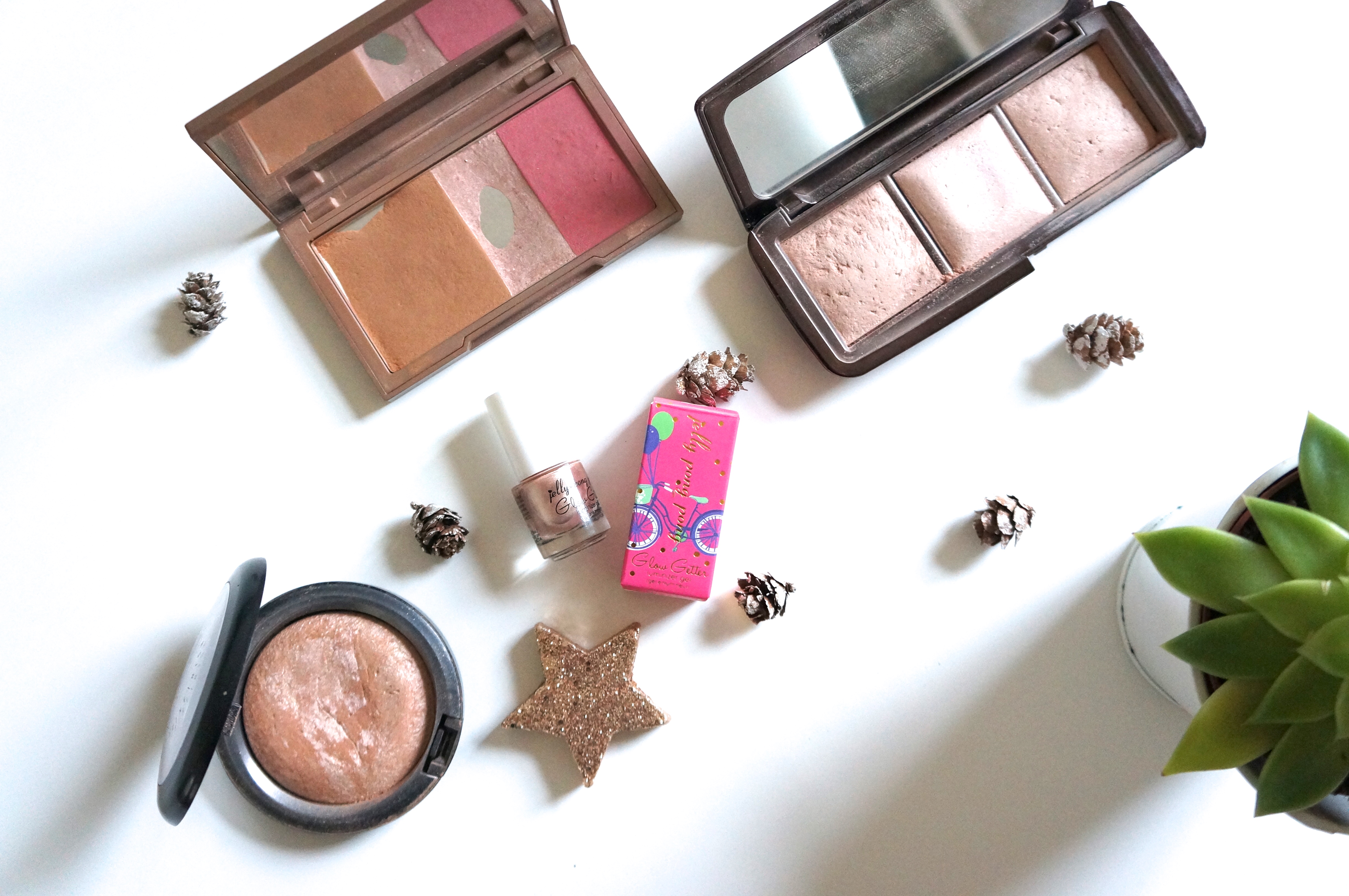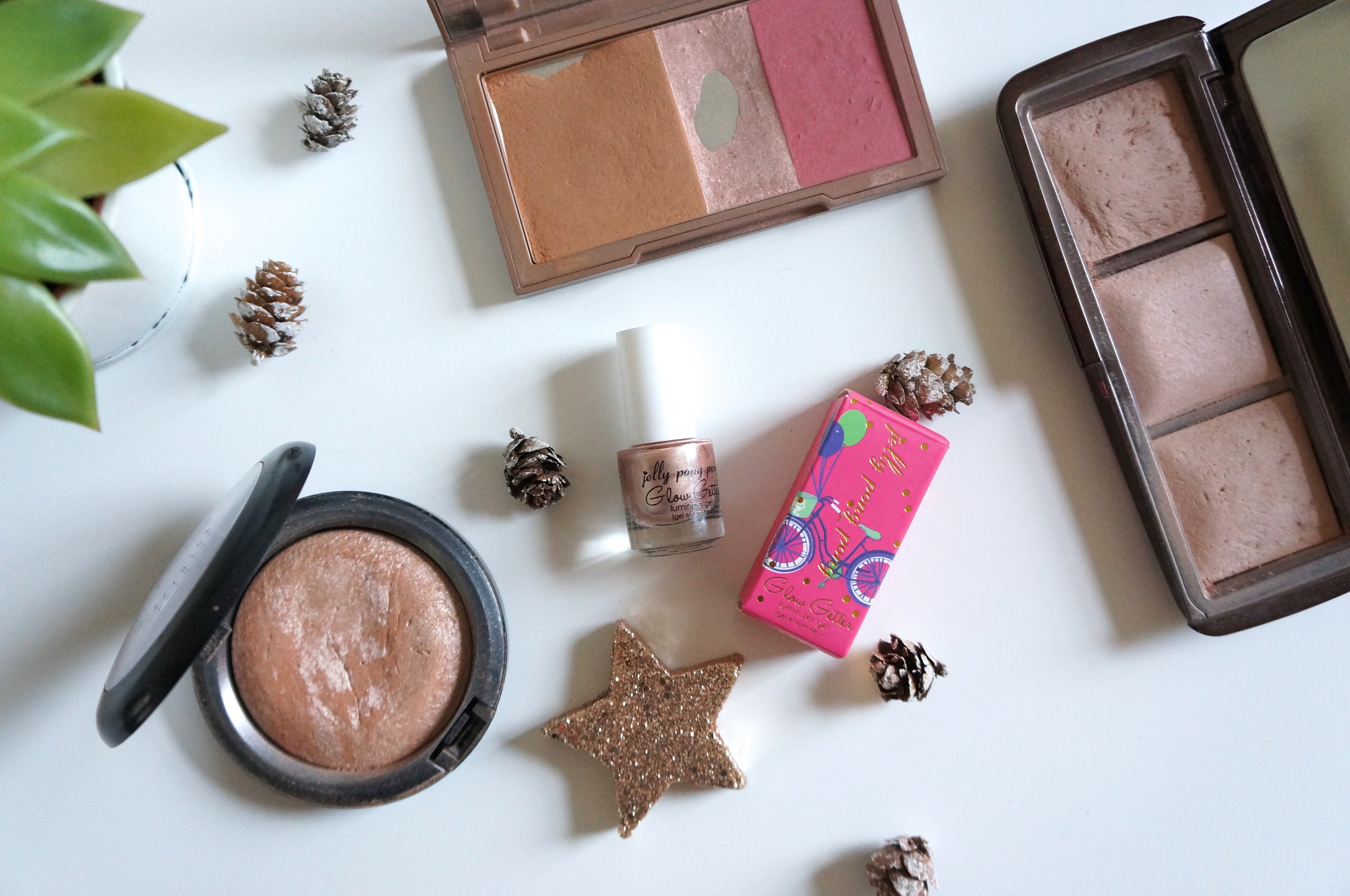 Du côté plus liquide (et donc, pas crémeux non plus), j’ai récemment découvert le Gel Enlumineur Glow Getter de Jelly Pong Pong grâce à la Birchbox. La texture est très agréable et le petit pinceau permet une application précise. On estompe vite au doigt ou au Beauty Blender et on le laisse se fondre sur la peau. Idéale pour les peaux grasses, il ne fait pas de placard et on ne nie pas qu’il risque moins de se casser que ses autres copains en cas de voyages fréquents. Il a tout du pratique sans lésiner sur la qualité!