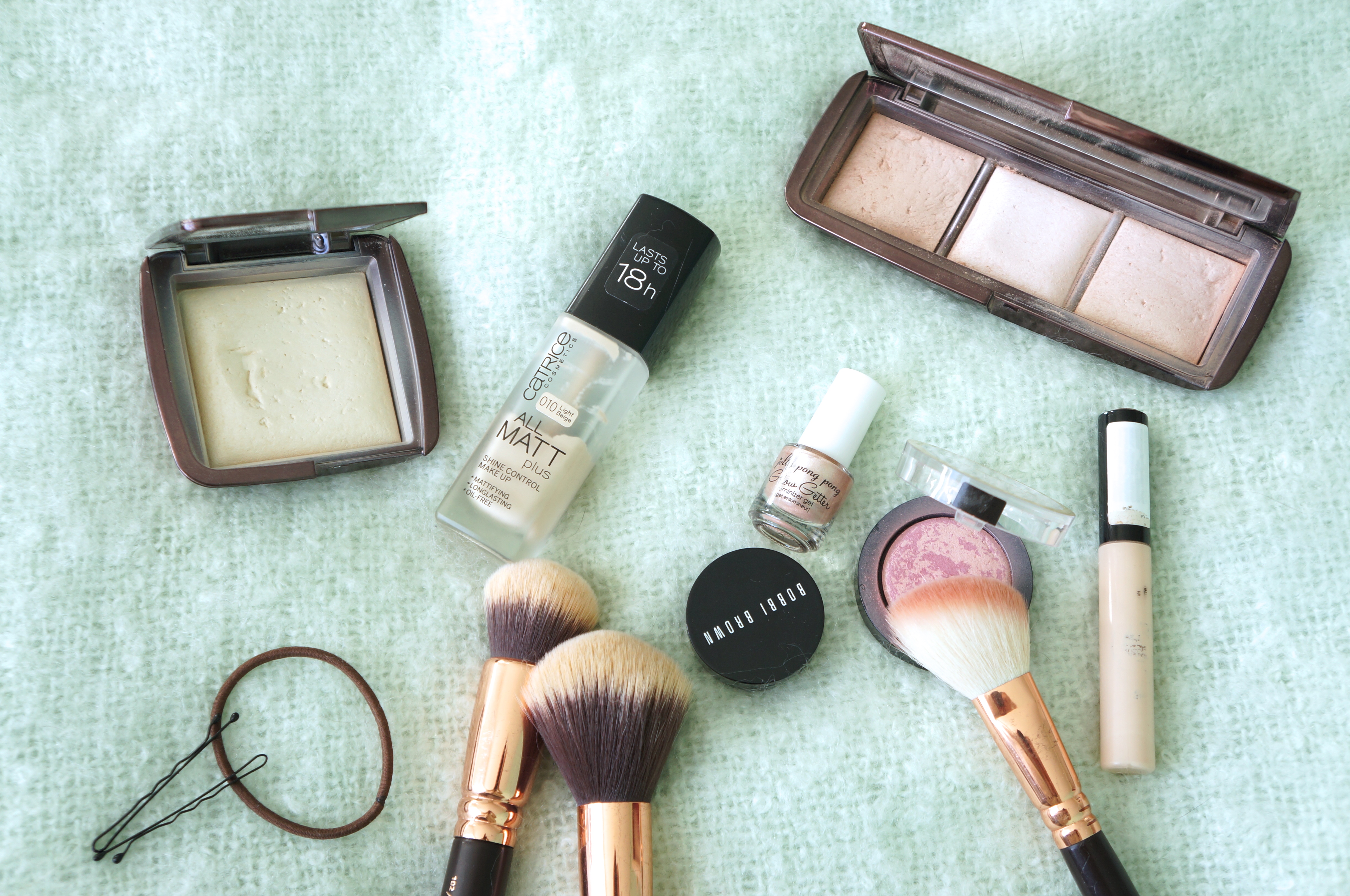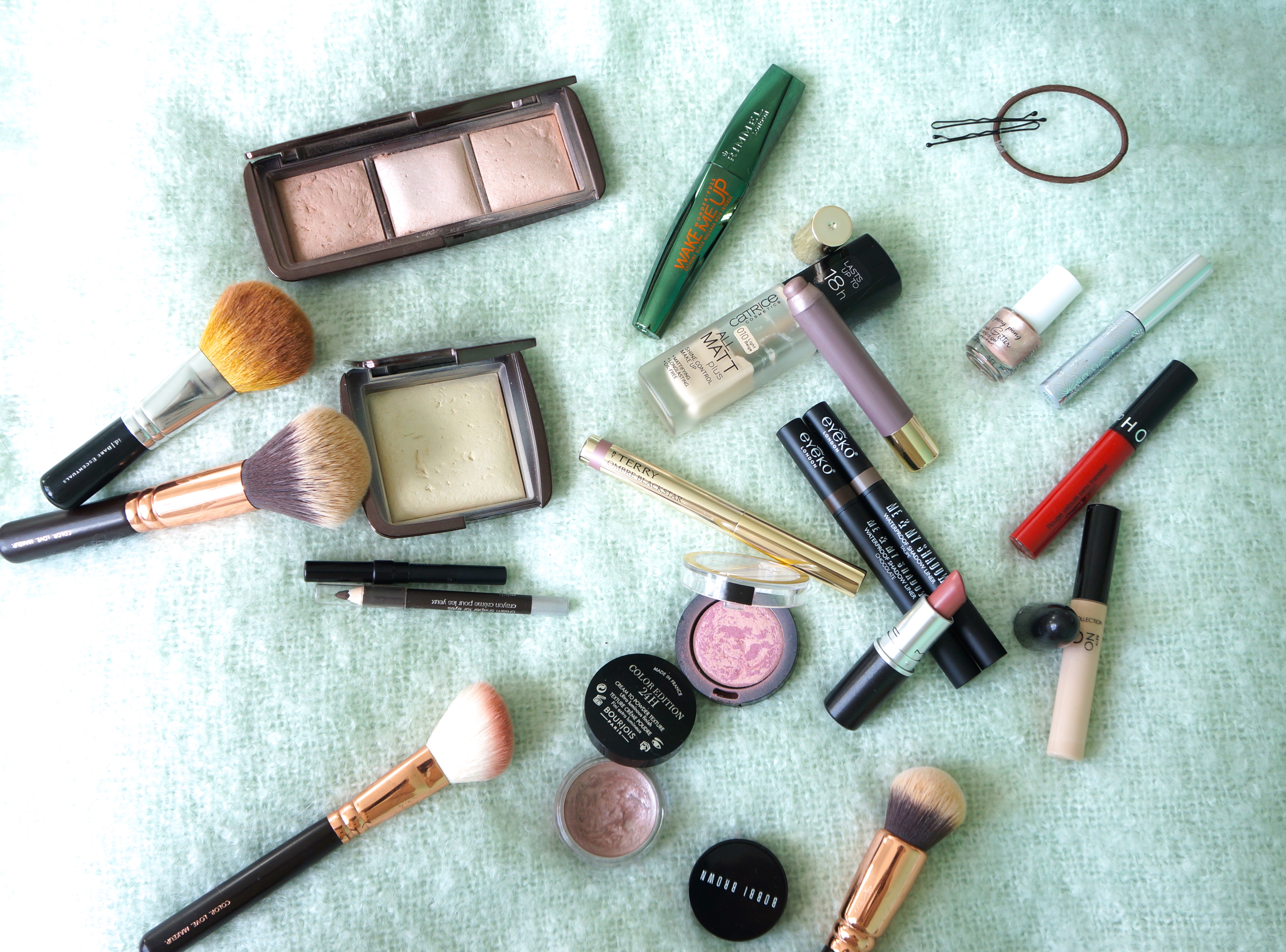 De la bonne came, celle que je connais par coeur! Le fond de teint All Matt de chez Catrice auquel ma peau semble s’être habituée, l’Ambient Lighting Powder en Incandescent Light de chez Hourglass qui me donne un effet bonne mine immédiat, la Ambient Lighting Palette de la même marque parce que j’adore le bronzer et le highlighter peut toujours être pratique. A cela, j’ajoute le blush Seductive Pink de chez Max Factor tout simplement parce qu’il est plus petit que Blushbaby de MAC, un correcteur de chez Bobbi Brown parce que j’ai toujours des cernes de malade quand je vais à Londres ainsi que mon anti-cernes Collection. Je prends quand même mon petit enlumineur Jelly Pong Pong au cas où j’ai envie de plus de lumière et puis bon… Il est minuscule! En pinceaux, je n’en prends que 3 de chez Zoeva: le 102 (fond de teint), le 106 (poudre), le 127 (blush). J’estomperai les cernes et le highlighter éventuel au doigt.