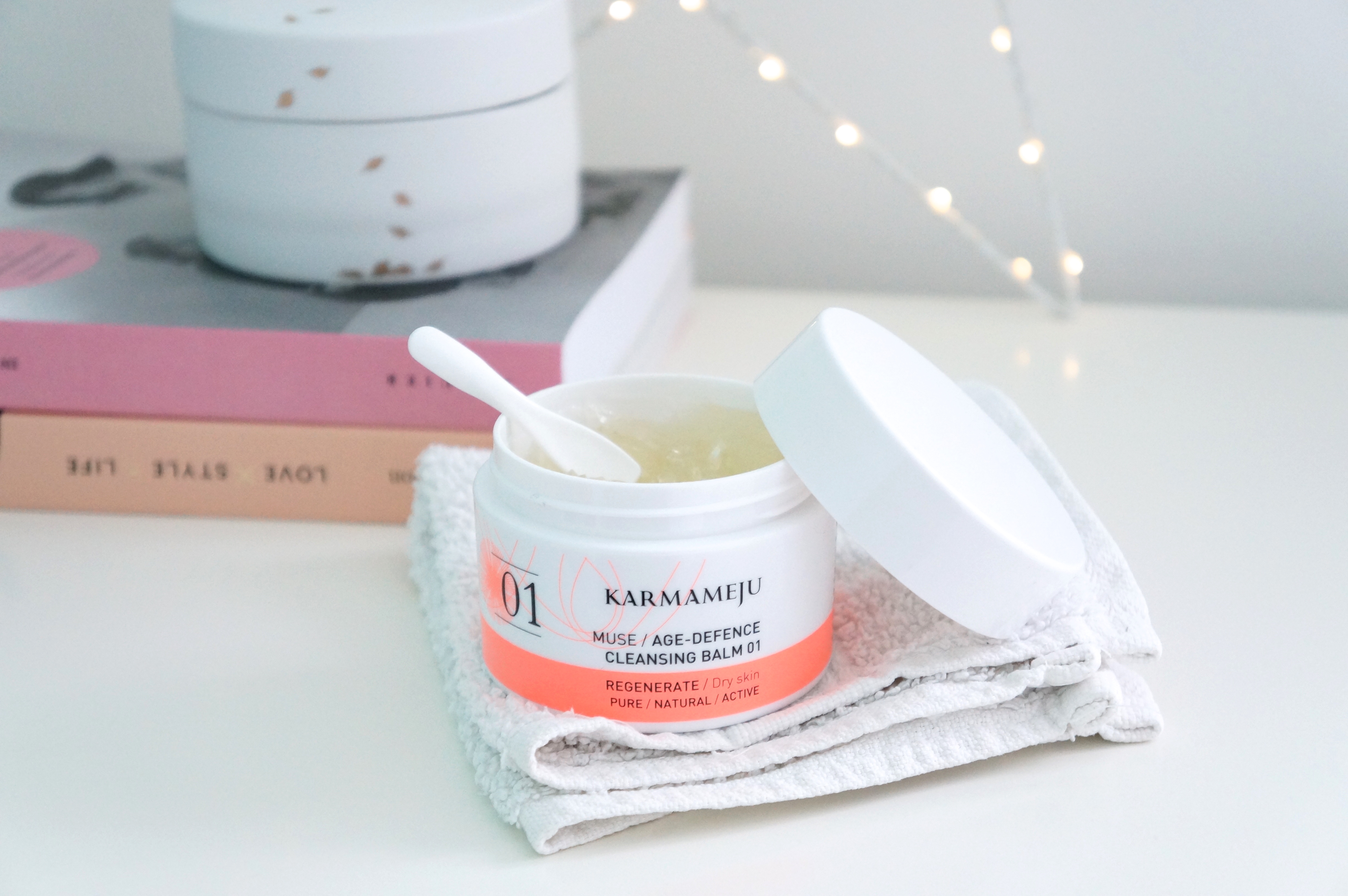 Le « Muse Age-Defence Cleansing Balm » (qui a d’ailleurs gagné l’award du meilleur produit de beauté au Danemark) est en fait un baume démaquillant tri-phases. On prélève un peu de gel qui se transforme en huile quand on l’étale (moi je masse toujours en même temps, c’est trop tentant et puis on ne dira pas non à un massage anti-âge) et qui s’émulsionne en lait au contact de l’eau. L’utilisation et la texture m’ont un peu rappelé le fameux Oskia Renaissance Cleansing Gel que j’ai pu essayer à Londres mais selon moi, celui de chez Karmameju est bien mieux élaboré et encore plus confortable. Pendant ce temps-là, on respire profondément pour profiter du parfum de rose et de lavande qui apaise ton esprit tourmenté. L’utilisation est on ne peut plus agréable et permet vraiment de déconnecter de la journée de boulot qui te colle encore à la peau. Au moment où le gel est appliqué et se transforme en huile, c’est comme si on venait d’appuyer sur le bouton OFF, qu’on oubliait les autres. On pense enfin à soi, on se fait plaisir jusque dans les narines (pour l’odeur stp, ne t’en fous pas dans le pif!), on est juste quelqu’un de simple qui veut oublier ses soucis pendant une minute.