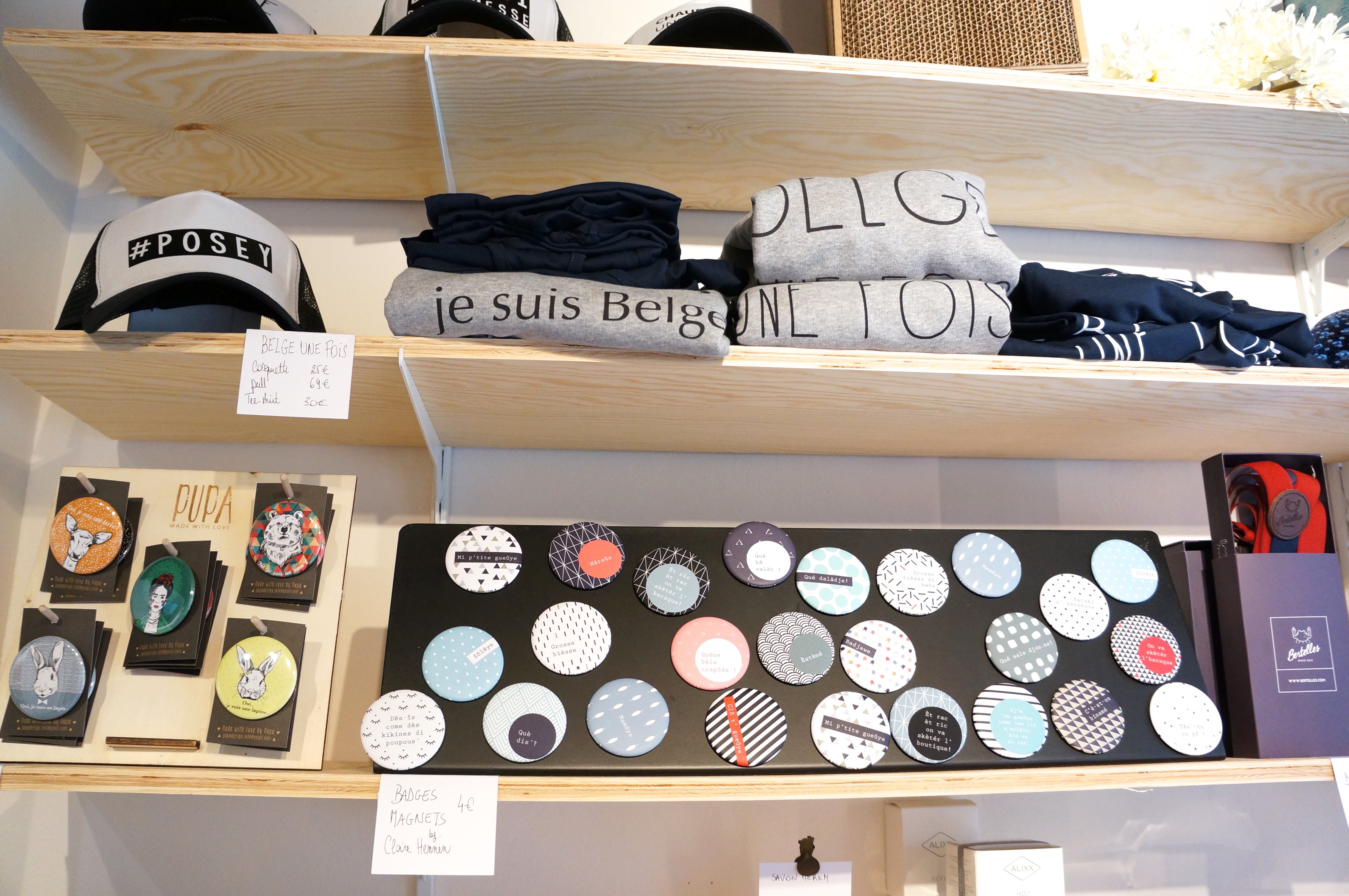 A la Couronne, on trouve donc le pays et la région sous différentes formes: spiritueux bien sûr mais aussi des livres (dont ce bon vieux Yves Budin! Impossible de se lasser de ses dessins!), un peu de vaisselle, des fringues (dont « Belge, Une Fois » et « We Are Clothes »), des badges ou des aimants aux expressions typiquement wallonnes (Badjawe),…