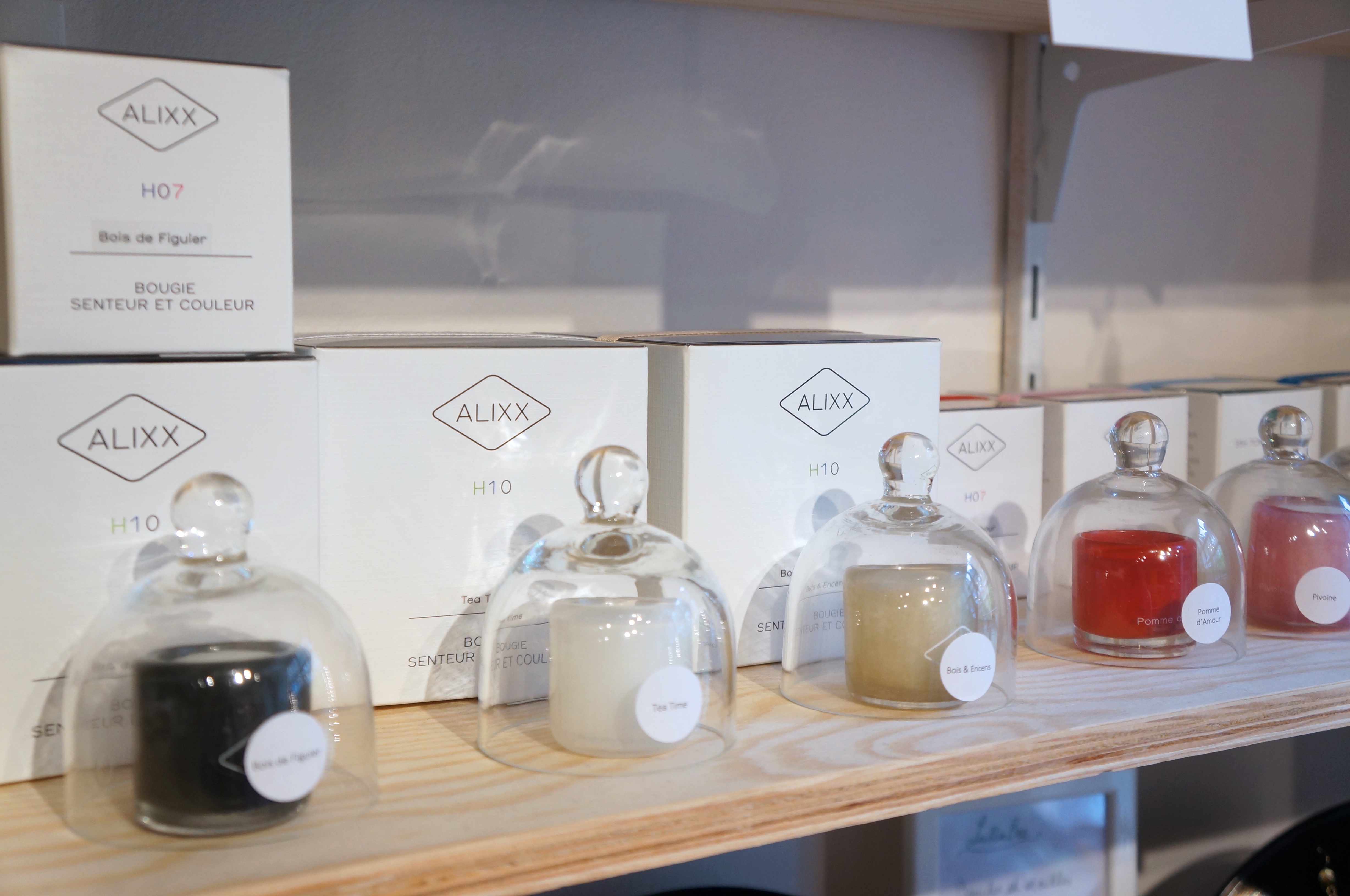 Les plus petits, les coquettes et les fanas de bougies y trouveront aussi leur compte puisqu’on peut noter la présence des savons « Le Lidjeu » qui a bien étoffé sa gamme depuis ma rencontre avec eux, quelques jolis doudous et les bougies artisanales Alixx tellement artisanales que chaque bougie est faite avec du verre soufflé qui n’en rendront jamais deux pareilles.
