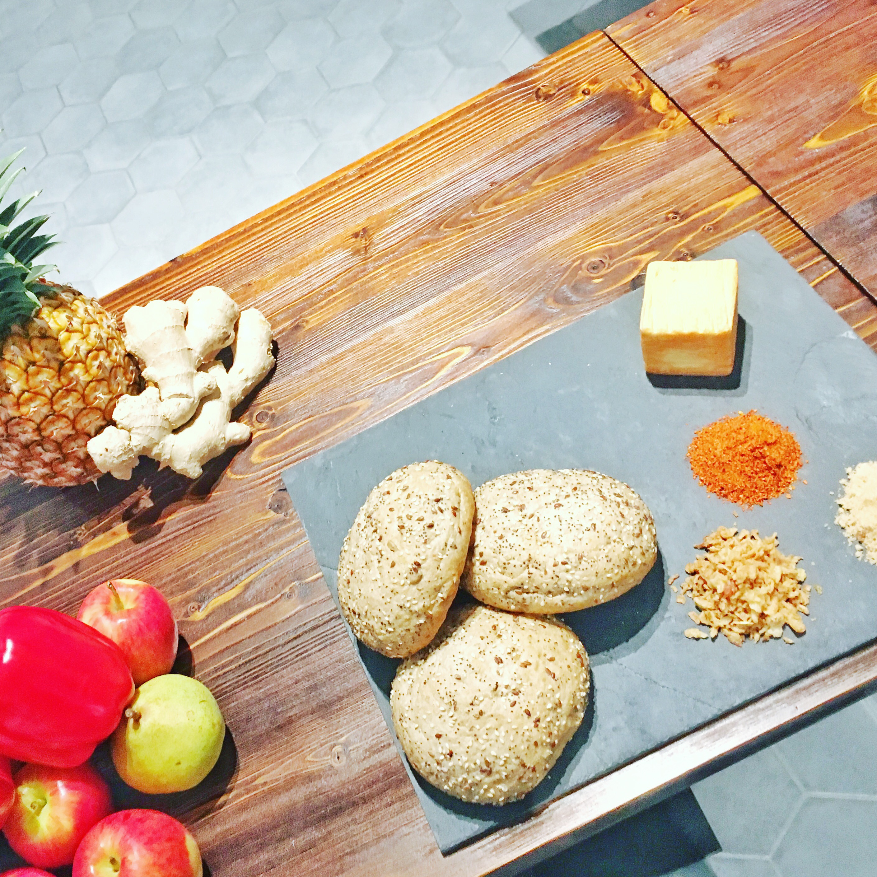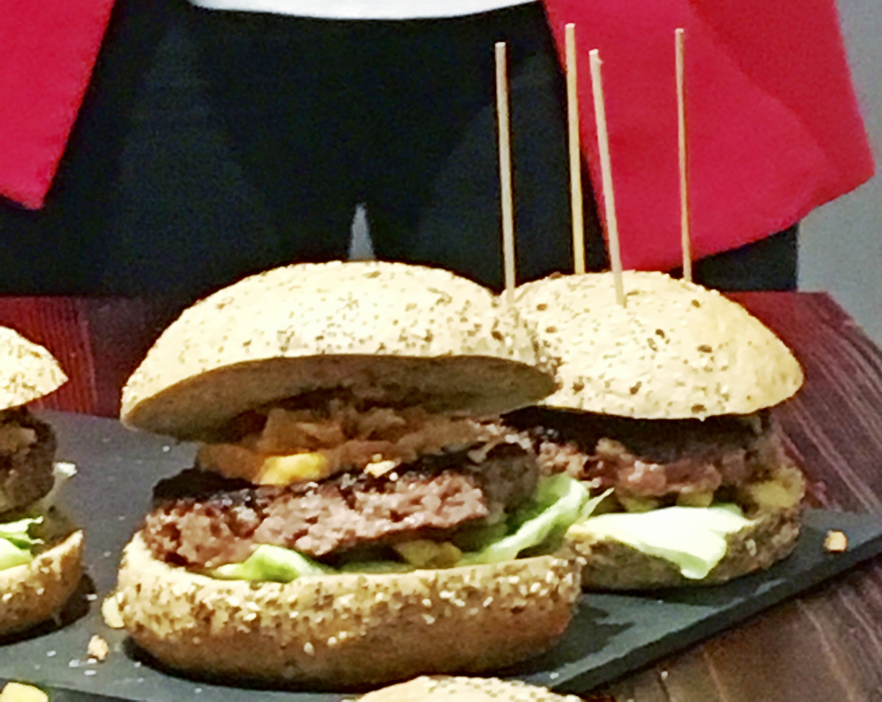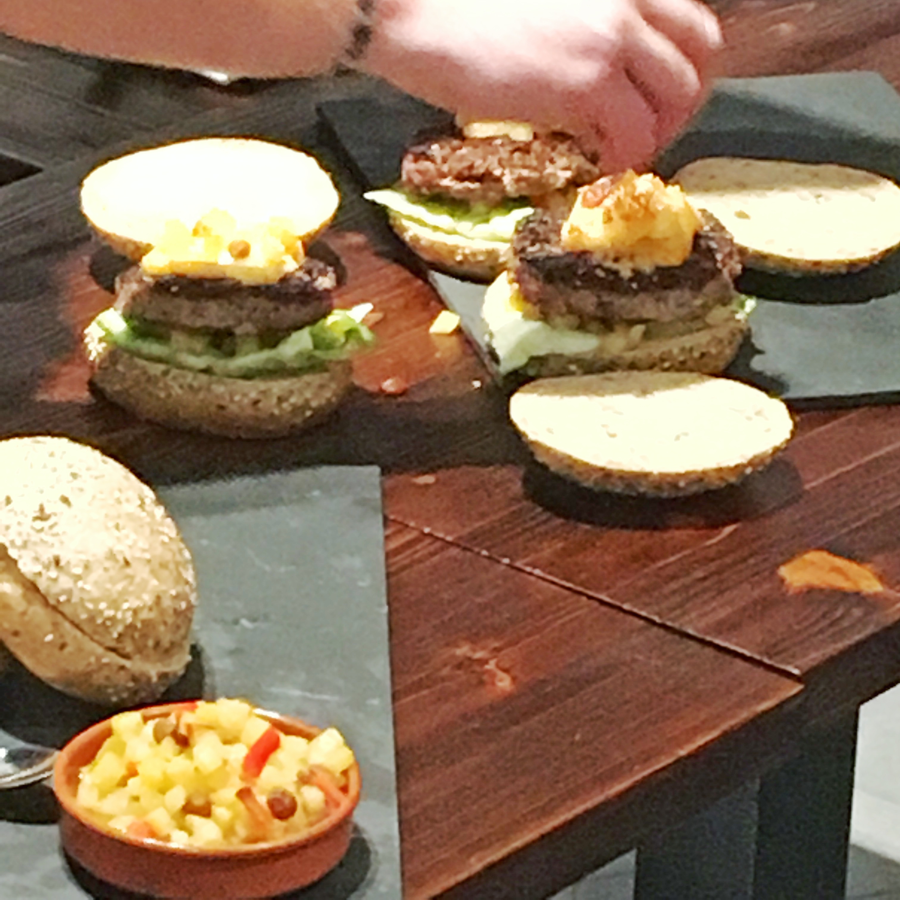 Le fromage de Herve vient donc remplacer le sirop de Liège et on part sur quelque chose de beaucoup plus fleuri où les pommes, les poires, le poivron, l’ananas, le piment d’Espelette, la cassonade ou encore le gingembre donnent lieu a une compotée magnifiquement réussie qui aura mis deux jours à dégager tous ses arômes. C’est définitivement elle qui donne le « la » à ce burger et qui magnifie la pièce de viande (de préférence bleue… Oui je sais mais si tu aimes un minimum la viande, tu la manges bleue. Autrement, c’est un SA-CRI-LEGE! En tous cas, dans mon monde à moi, oui!), le fromage de Herve et le pain artisanal de chez Dauphine (et choisi en fonction du burger de Julien Lapraille s’il vous plaît!). Le tout agrémenté d’une Iceberg bien fraîche et d’oignons frits pour un côté croquant encore plus gourmand et on y est!