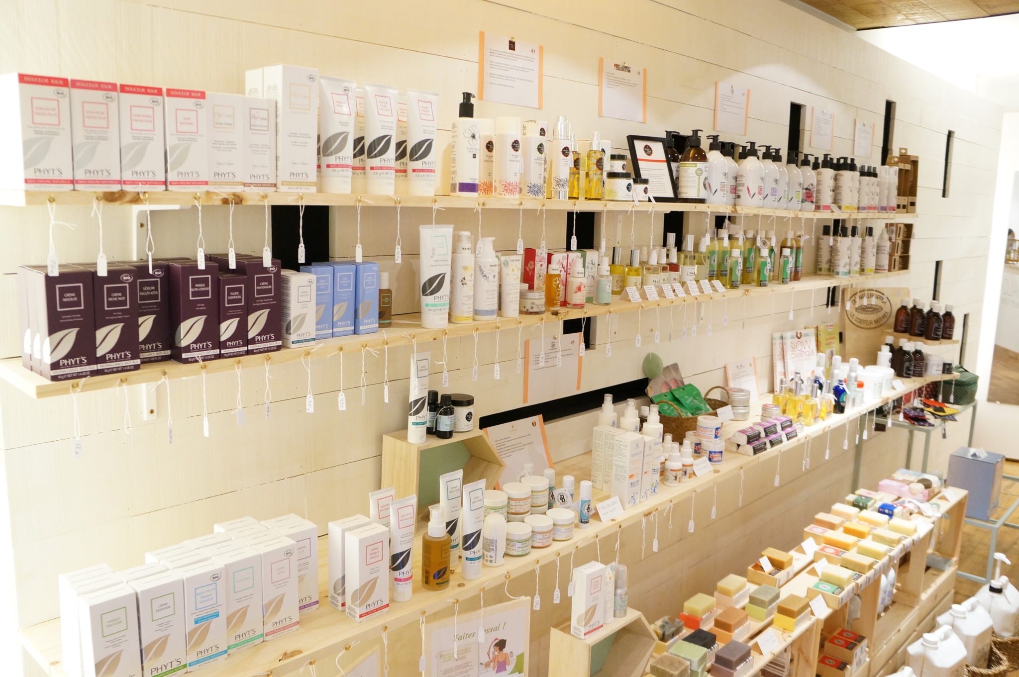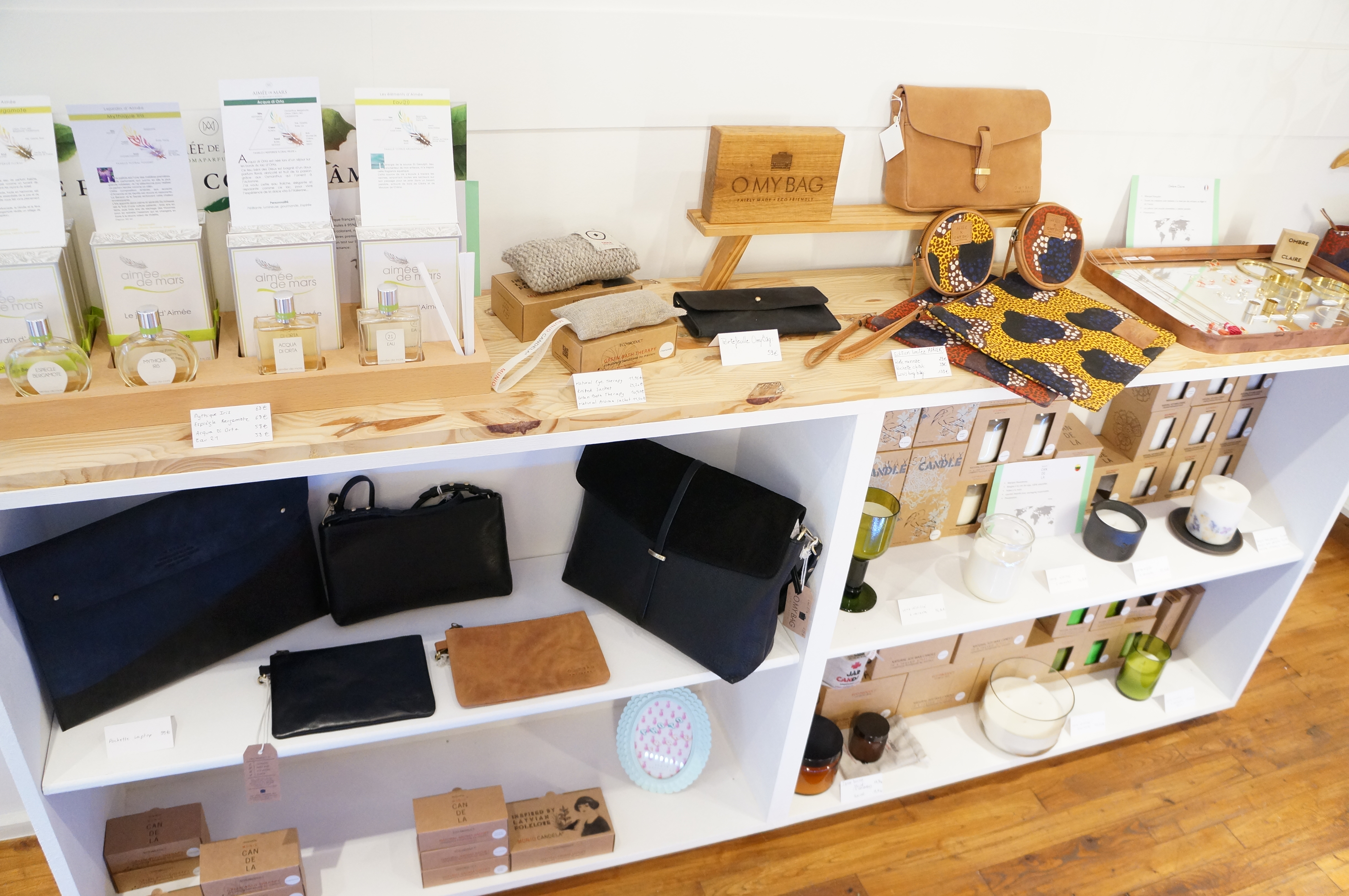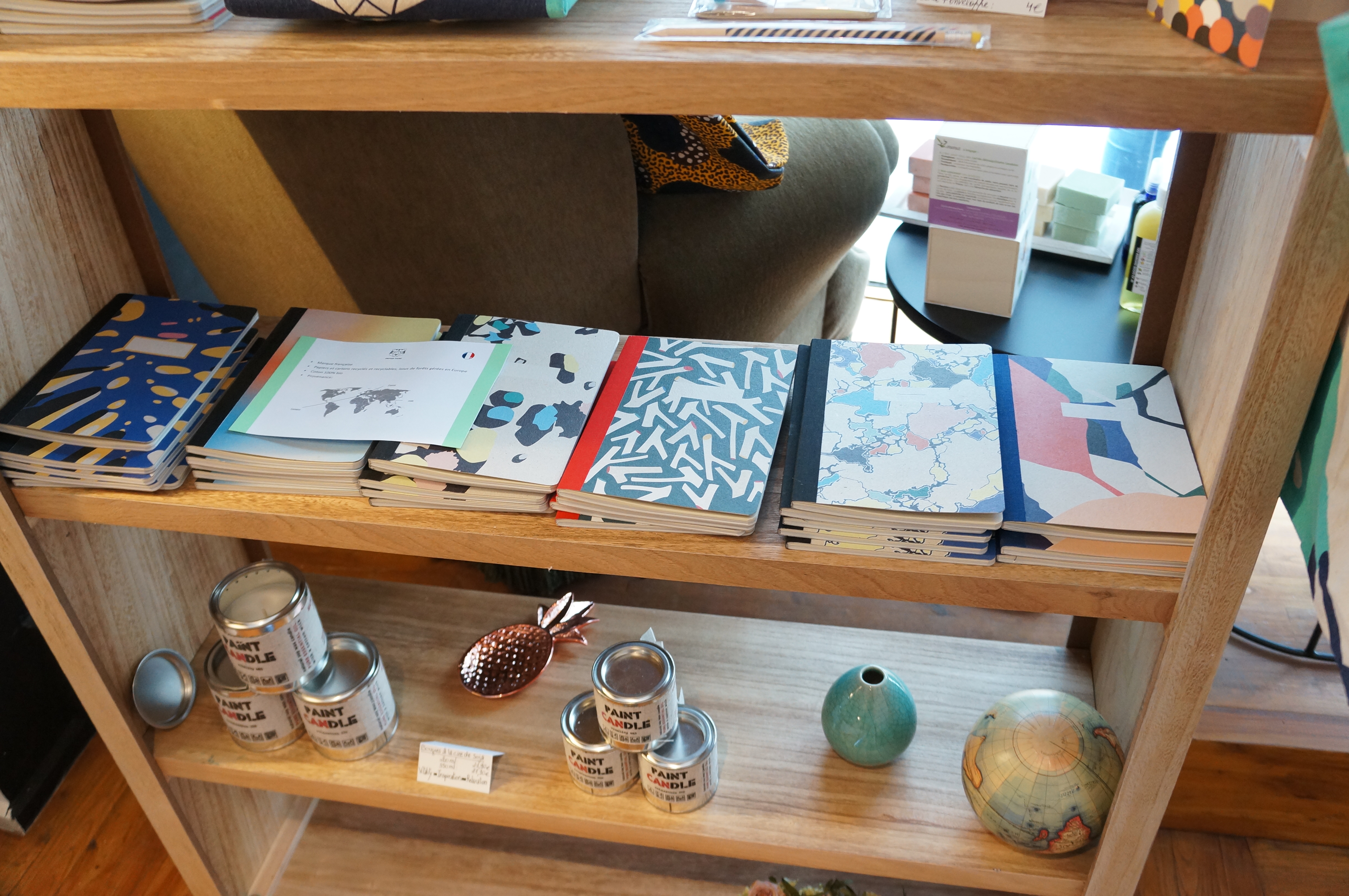 Au-delà de la vente, on ressent une envie sincère de communiquer et d’aider les gens à faire un choix réfléchi. La boutique est ainsi complète au point de proposer des fiches explicatives sur les marques sélectionnées ainsi que de la littérature sur le sujet. Puis on a aussi de belles bougies et de la papeterie, parce que c’est plus agréable à lire en prenant notes dans de beaux cahiers sous les arômes d’une bougie naturelle!