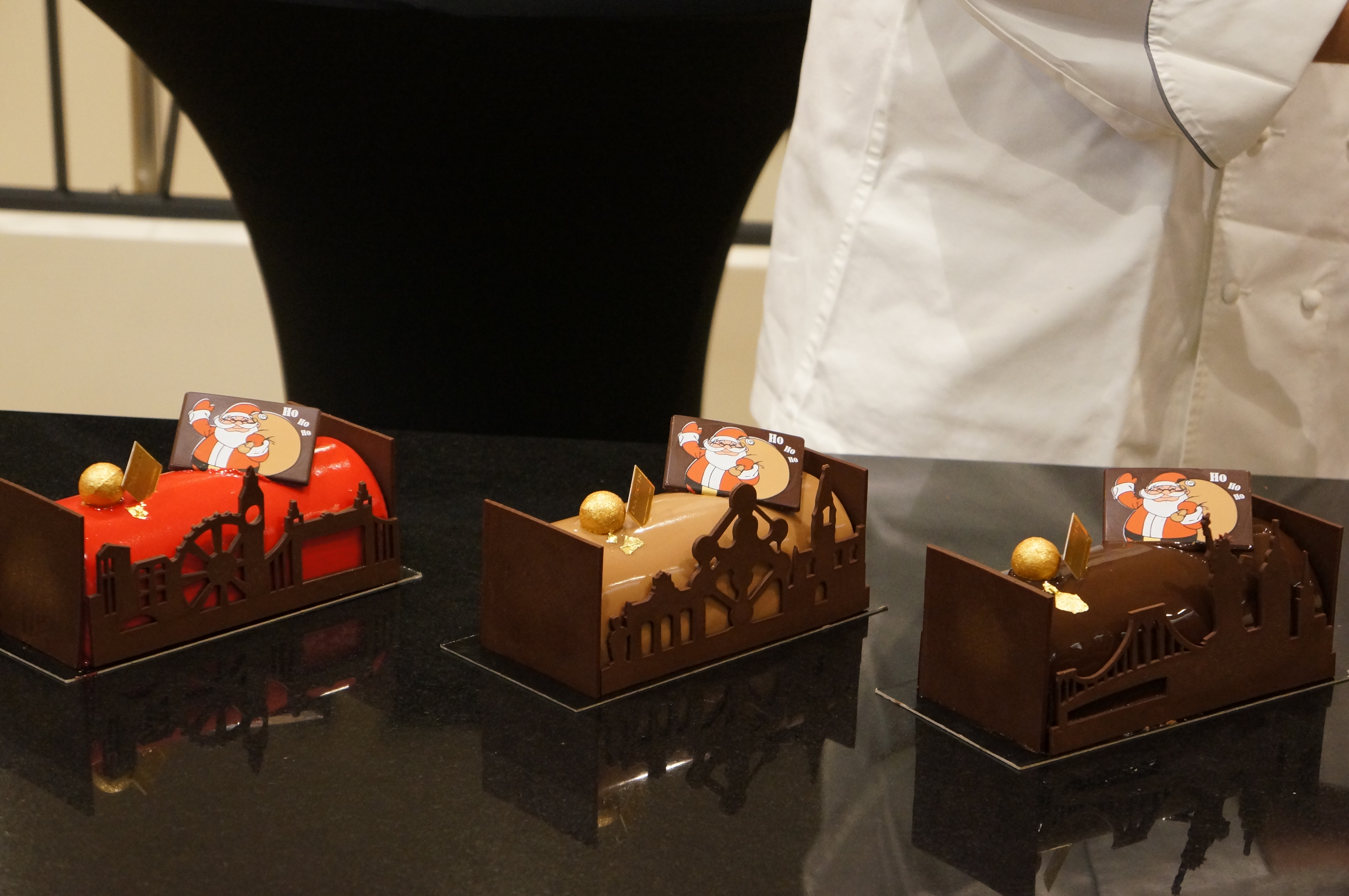 - Un Noël à Paris: Forêt noire revisitée (mousse chocolat Madagascar, mousse légère à la vanille de Madagascar, un crémeux et un coulis de grillots semi-confites et un biscuit pain de Gênes).