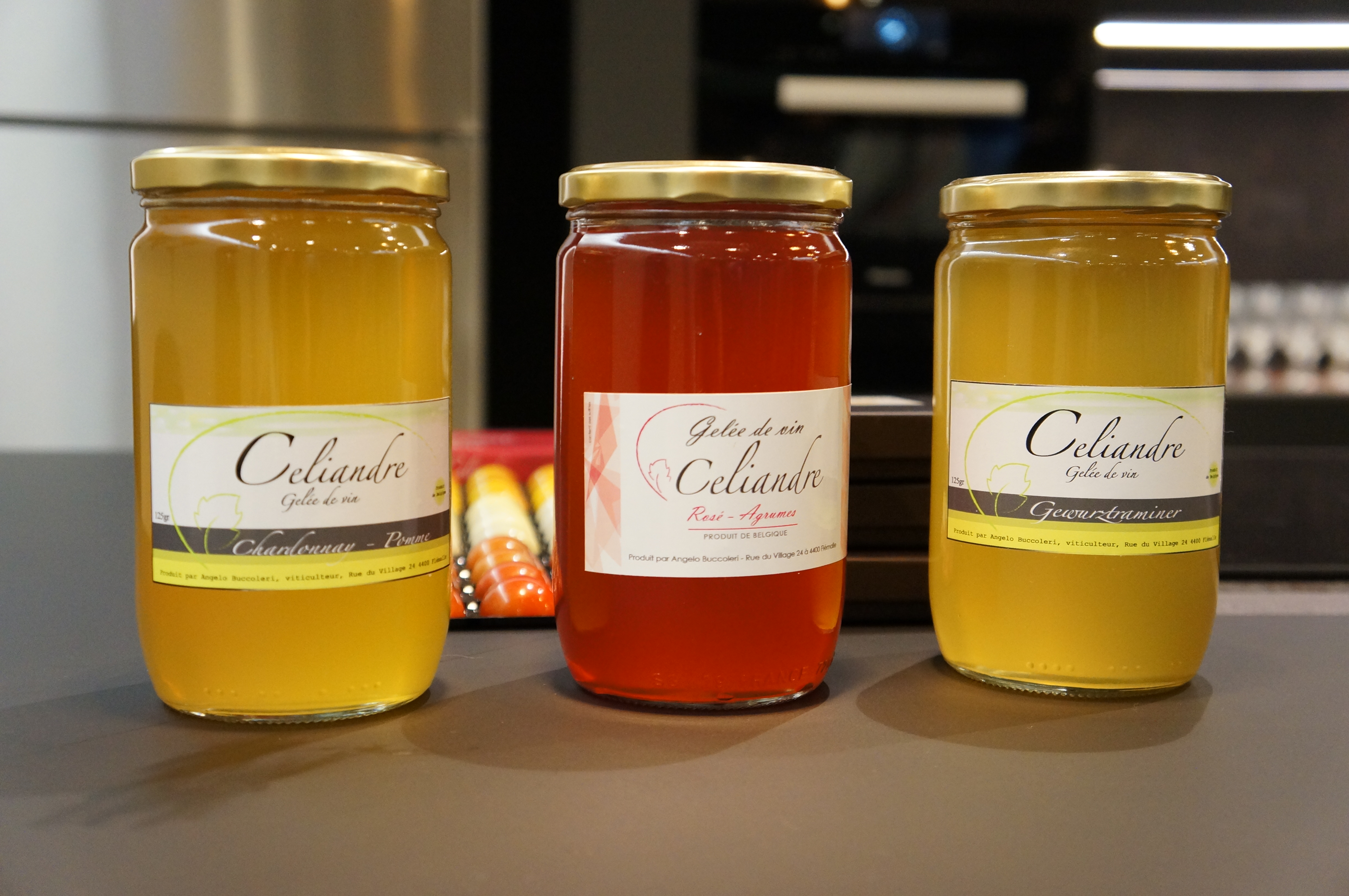 Ici on a une très belle collaboration locale avec Angelo et Emmanuelle Buccoleri, viticulteurs flémallois (oui oui, on a des vignes sur le Fort de Flémalle!) qui ont conçu 3 savoureuses gelées de vins à partir desquelles Darcis a travaillé 3 ganaches. Cela donne donc 3 dômes: