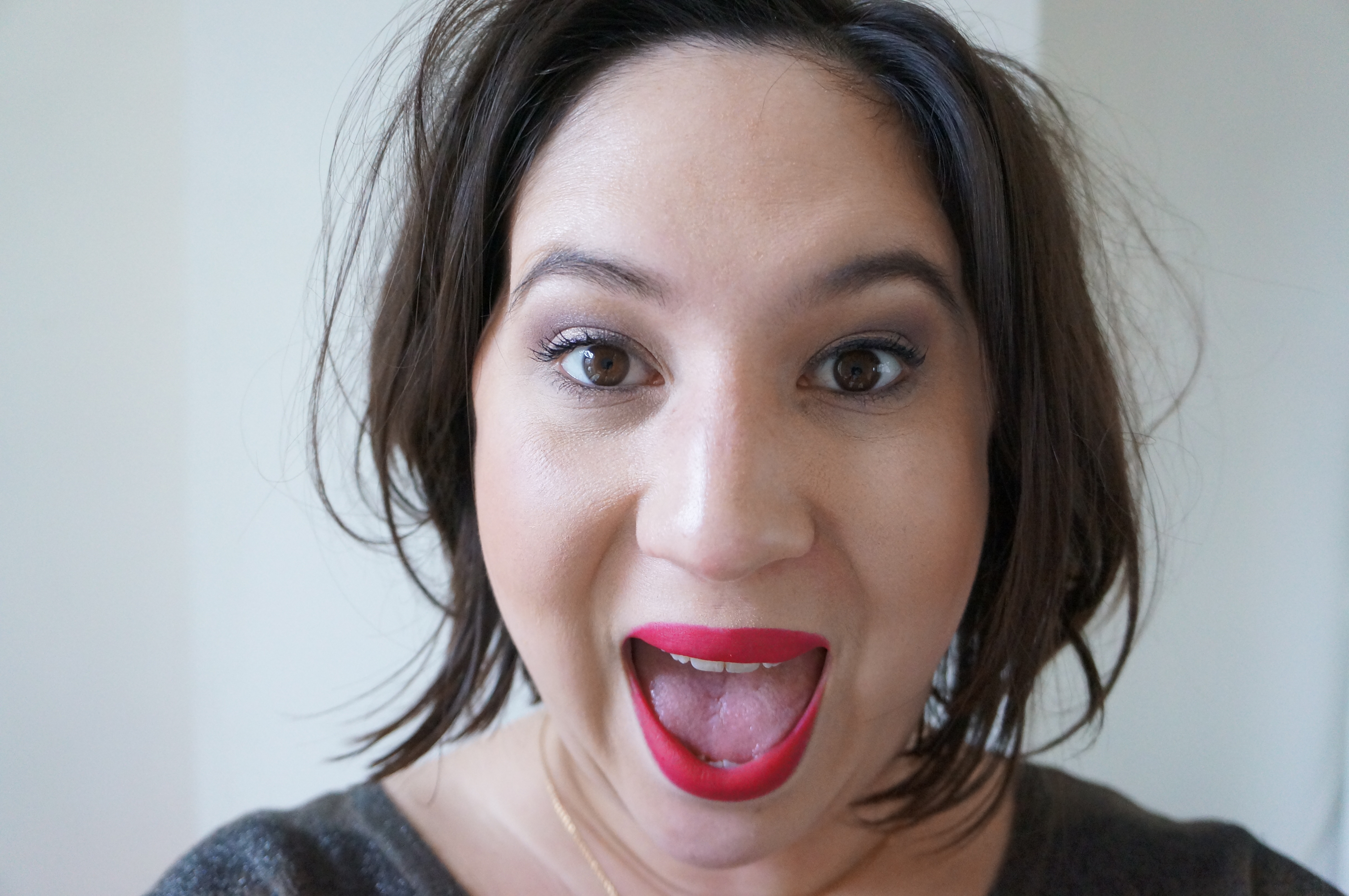 Le rouge mat a une différence importante cela dit: il doit répondre à plusieurs critères. Le premier étant la tenue parce qu’il n’y a rien de plus moche qu’un mat qui s’estompe vite et mal (tu te souviens de ce moment où, après une bonne soirée, tu rentres dans ta voiture et constates que l’intérieur de tes lèvres est nu alors que l’extérieur est bien rouge? Oui, le délire que tu te faisais sur ton voisin de table trop sexy est sans doute foutu, il était juste gentil en fait. Ou avait pitié…). Le deuxième, c’est l’application. Pour une encre de lèvre, l’applicateur doit permettre de ne pas déborder dans tous les sens parce que pour rattraper du mat sur la peau, ça peut des fois relever de l’AAAArt. Pour un rouge à lèvre mat normal, il faudra qu’il ne soit pas trop sec afin de permettre tout de même un glissement et une application correcte. Le dernier est lié au deuxième: la texture. Un mat est, par définition, asséchant. Celles pourvues de lèvres sèches devront donc prévoir une bonne hydratation au préalable. Il n’en reste pas moins que même avec des lèvres normales, le mat assèche sa race. C’est là que le choix s’opère aussi (et qu’il est aussi bon d’en essayer au préalable pour voir l’effet sur la journée) et où on sélectionnera le moins asséchant et le plus confortable.
