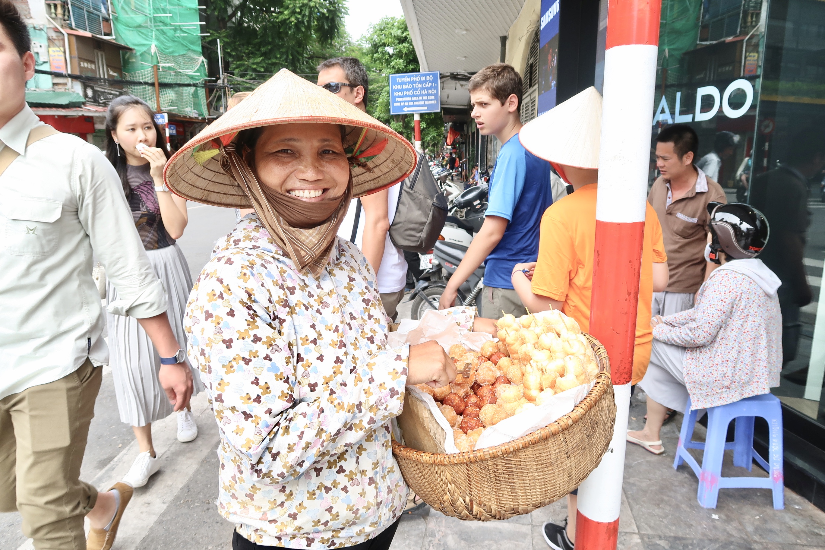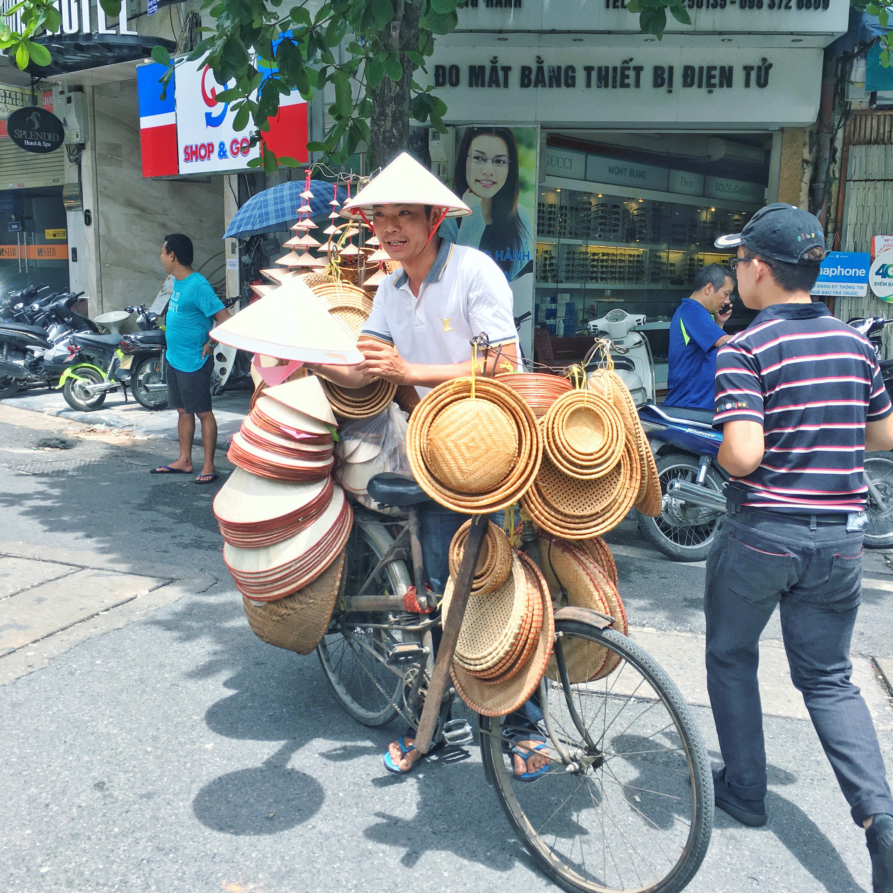En ce qui concerne Hanoï, nous étions dans le vieux quartier, à deux pas du lac Hoan Kiem. Il est très beau et permet de découvrir de vieilles maisons et d’anciens agencements de rues. Si jamais il vous tente, je ne saurais que trop vous conseiller d’y aller le week-end. En effet, les alentours du lac sont piétonniers (comme vous le verrez dans le vlog) du vendredi soir au dimanche soir et franchement, ne pas devoir constamment faire attention aux mobylettes et aux voitures, c’est reposant. Au Vietnam, les trottoirs servent principalement de parkings à mobylettes (j’ai vite compris que la mobylette régnait en maître là-bas). Il faut donc marcher le long de la route avec la circulation et tout le temps faire attention à ses sacs, son gsm, son appareil photo, etc. Alors qu’il est plus que nécessaire de lever la tête pour apprécier les belles façades, il est aussi difficile de ne pas constamment regarder où on marche et qui s’approche. Vous le verrez avec moi au fil du temps mais le Vietnam est un beau sac de contradictions autant dans la façon de vivre des vietnamiens que dans plein de détails ou encore, dans la politique ou l’histoire. J’ai essayé de chercher une logique à certaines choses ou certains actes… Ca n’a servi à rien, quelques fois, il n’y en a aucune.