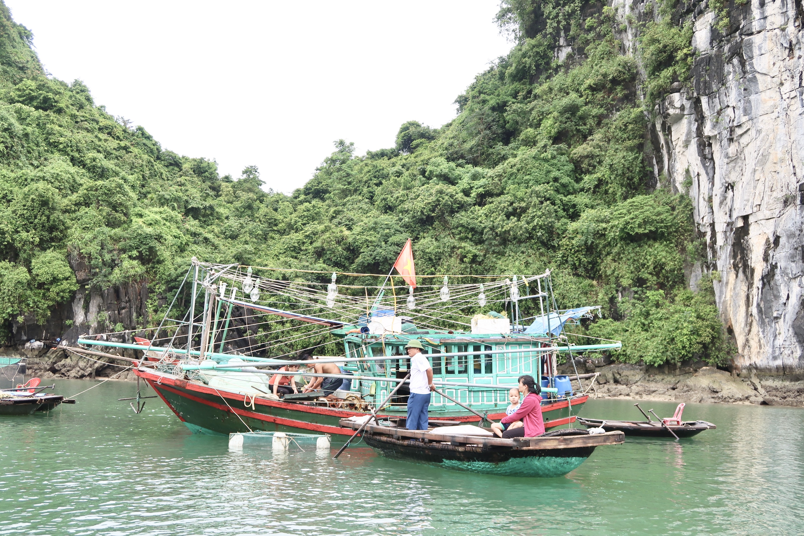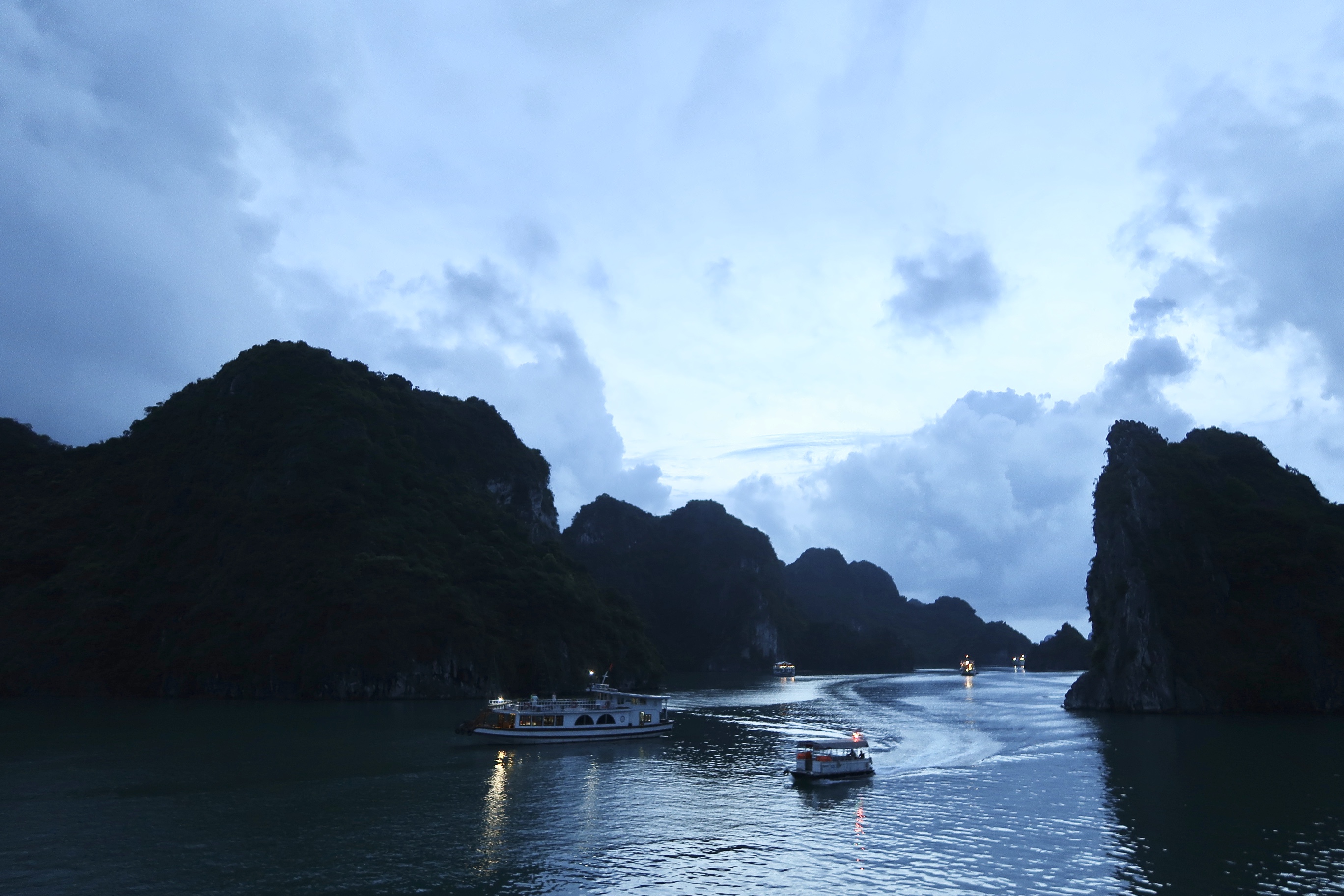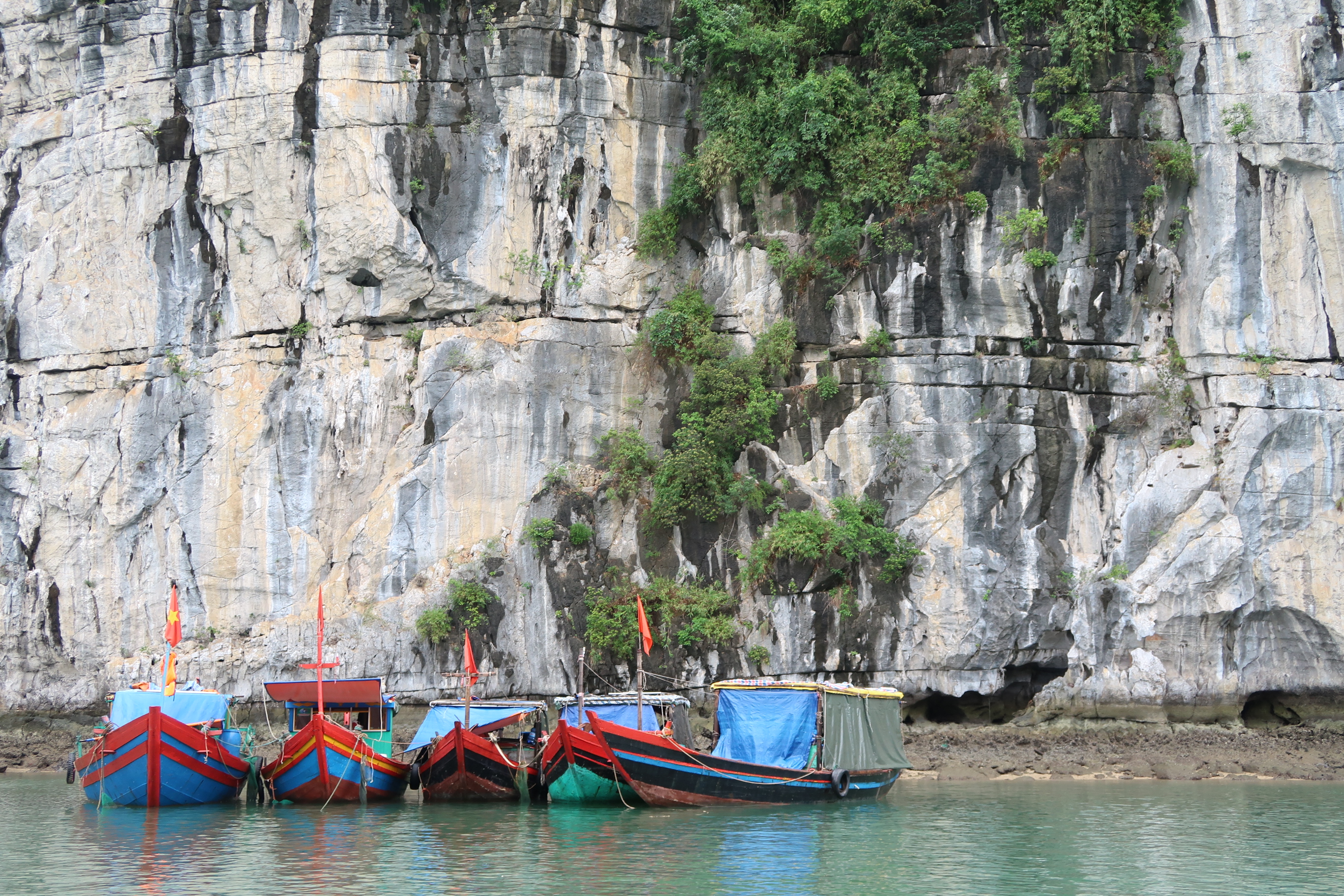 La première fois, c’était juste une excursion d’un jour sur un petit bateau. On a super bien mangé – des crevettes au bbq notamment – et on s’est baignés. Le temps était superbe. La seconde fois, c’était bateau de croisière comme toi, avec les mêmes excursions mais la météo était grise et venteuse. Voici le récit de la seconde fois: https://suasaday.wordpress.com/category/vietnam/halong/