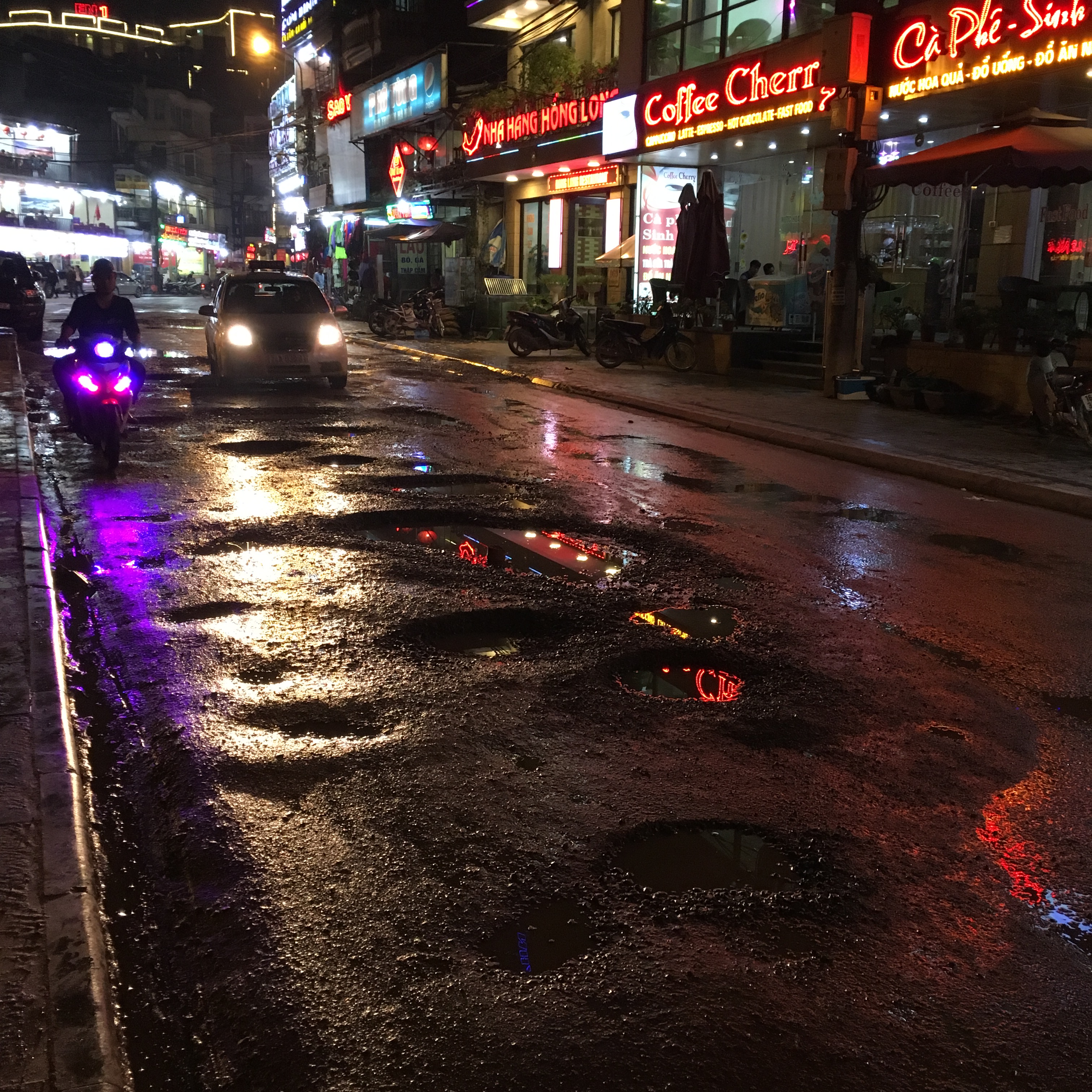 Concrètement, nous sommes donc restés à l’Hôtel Freesia qui coule de partout, n’est pas droit, sent l’humidité, a dû vider sa piscine (au grand damn des enfants d’ailleurs…) parce qu’il fallait la refaire et va sans doute s’effondrer comme un château de cartes d’ici 2 à 5 ans. L’hôtel est très beau de prime abord en fait. Ce sont juste toutes les finitions qui ont été faites « à la vietnamienne »… Ce que j’ai par contre beaucoup apprécié, c’est la gentillesse et le sourire du personnel qui doit être tout à fait conscient (ou pas hein… Parce que les notions de petit ou gros problème de finitions ne sont pas les mêmes là-bas qu’ici…) des problèmes de l’hôtel et qui essaie de rattraper le coup par le service. Vu la petite espérance de vie de l’hôtel (et ça n’est sans doute pas le seul à être dans ce cas), j’ai beaucoup de peine pour tout le staff qui en subira les frais…