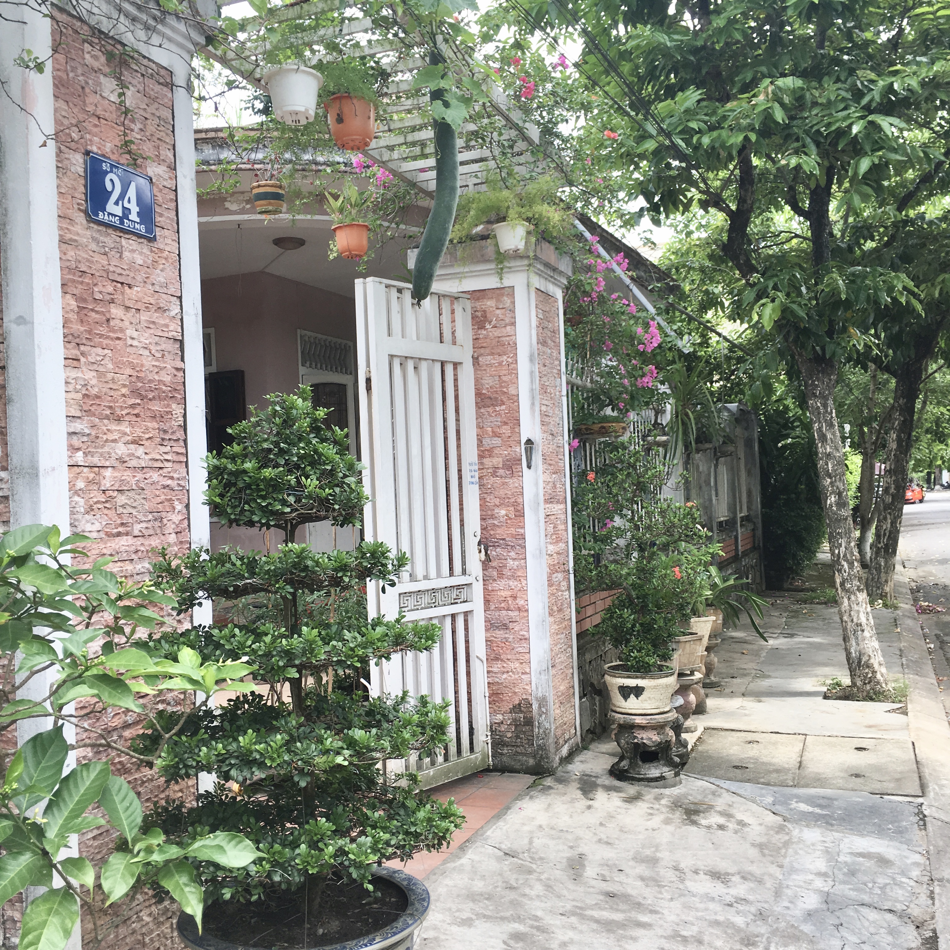 J’ai justement adoré ces rues parce qu’elles sont vietnamiennes et qu’elles ont été faites et conservées sans tenir compte du tourisme. On y voit aussi leurs beaux jardins et leur sourire désintéressé (c’est rare ça, en général, ils sourient pour vous refourguer un truc), les enfants jouer et une chaleur humaine réelle. Alors que j’étais en totale admiration devant un de ces beaux jardins, j’ai été invitée à rentrer mieux le découvrir par le fils d’un habitant qui travaillait juste devant. « Rentrez! La maison appartient à mon père! Il parle anglais et français et sera ravi de vous expliquer ses plantes! ». Un peu gênée, je suis donc rentrée et ai été accueillie par un charmant jeune homme de 84 ans trop heureux de pouvoir parler un peu français et anglais. Cet ancien professeur de philosophie m’a expliqué que la maison était dans la famille depuis au moins ses grands-parents. Je suppose donc qu’il descend d’une famille d’anciens serviteurs de l’empereur (Bao Daï ayant abdiqué en 1945). On a papoté le temps qu’une grosse averse passe: la guerre, le communisme, mes origines eurasiennes, sa famille, Trump… Je lui ai expliqué que l’Europe n’était pas pro-Trump du tout, il était persuadé qu’on l’adorait! Cet homme a été une de mes plus belles rencontres de voyages, ce genre de moments un peu suspendus dans le temps où on papote sans être inquiets. J’ai un peu regretté de ne pas avoir pris ses coordonnées pour lui envoyer cet article puis je me suis rappelée que j’ai aimé quitter ce moment en me disant qu’il y a des choses qui doivent rester authentiques.